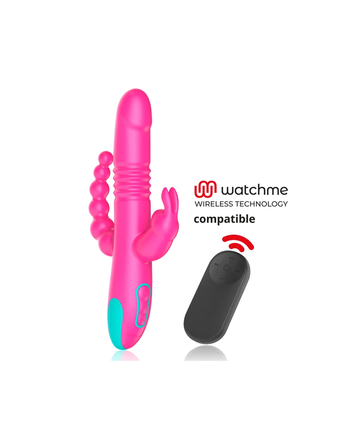 Disfruta de la triple estimulación: anal, vaginal y de clítoris. El juguete perfecto para los amantes de las emociones fuertes. La gama DONALD TRIPLE ESTIMULACIÓN ANAL, PUNTO G & CLÍTORIS incorpora un conjunto de funciones nunca antes visto en un vibrador: estimulación del punto G gracias a su base de suaves perlas giratorias, penetración mediante la asombrosa función “up & down“, estimulación anal mediante bolas vibradoras, estimulación del clítoris gracias a su increíble "rabbit" y, además, es compatible con la novedosa tecnología de control remoto Watchme.