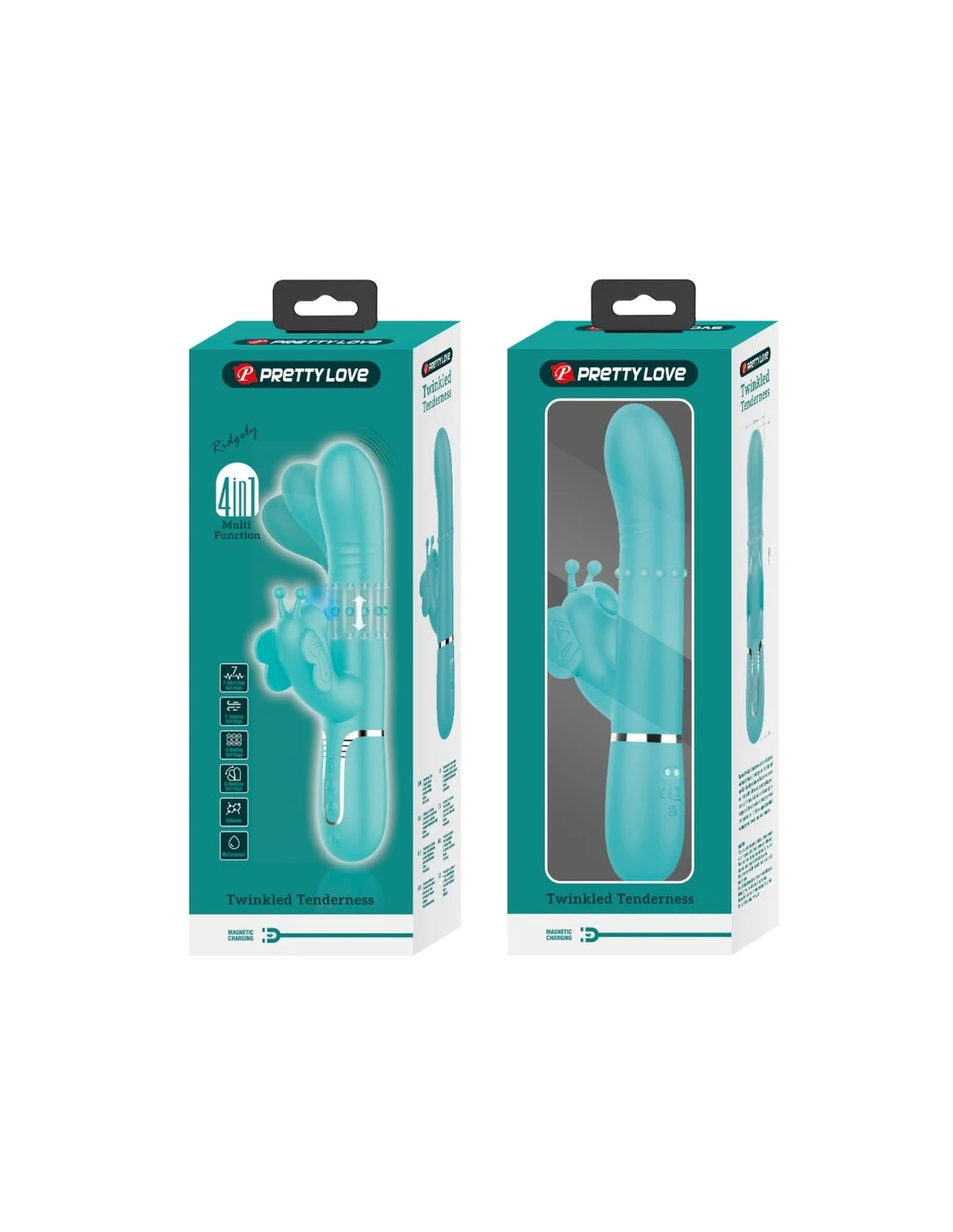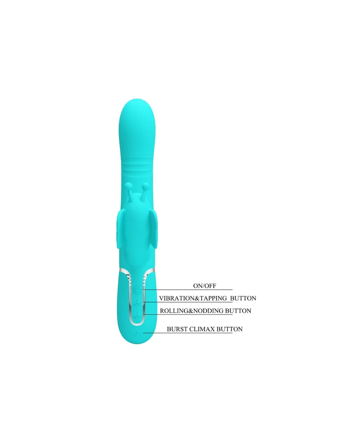 PRETTY LOVE - VIBRADOR RABBIT MULTIFUNCIÓN 4 EN 1 MARIPOSA VERDE AGUA