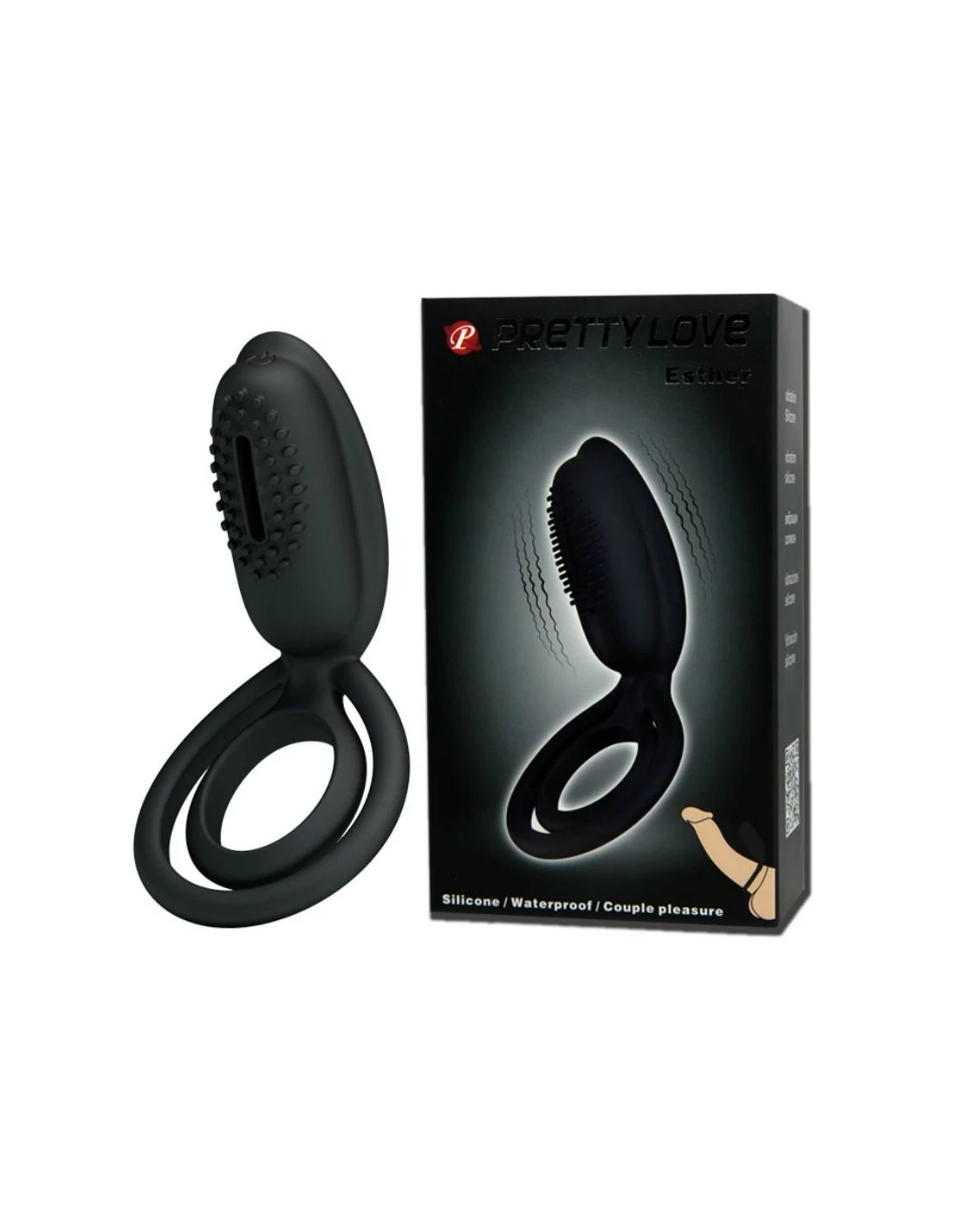 Pretty Love Esther es un anillo de calidad inigualable, fabricado con la silicona de más alta calidad, se acciona muy fácilmente y además consta de estimulación clitorial vibratoria. Colócalo en tu pene o en tus dedos y gracias a su silicona resistente y de gran calidad, se ajustará perfectamente mientras la vibración estimula el clítoris de tu pareja.