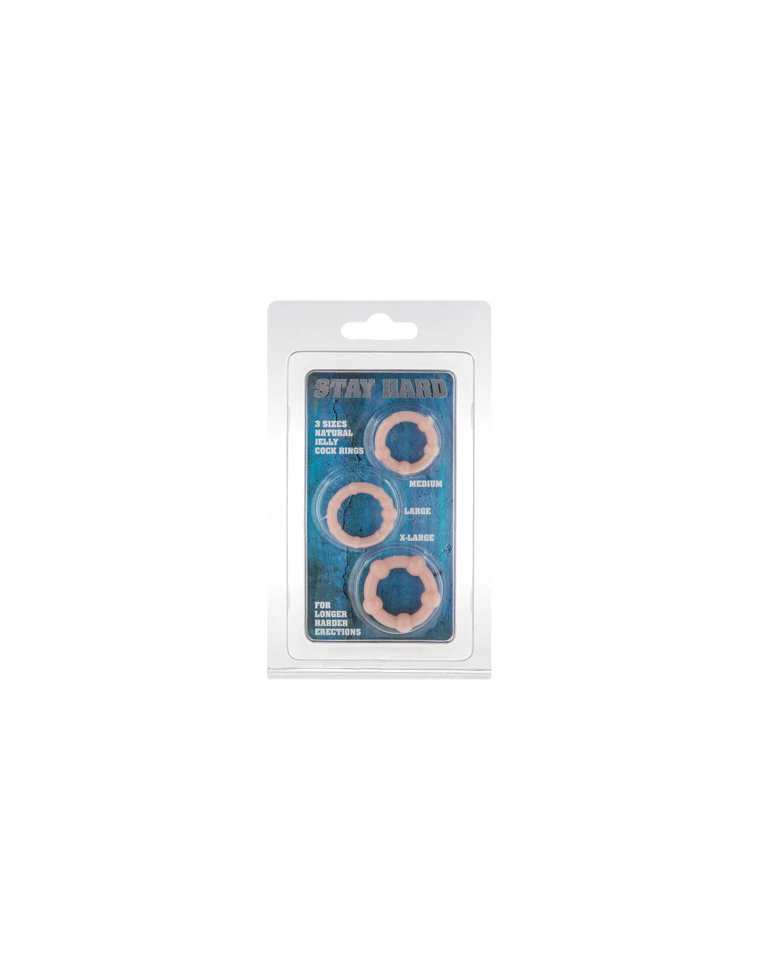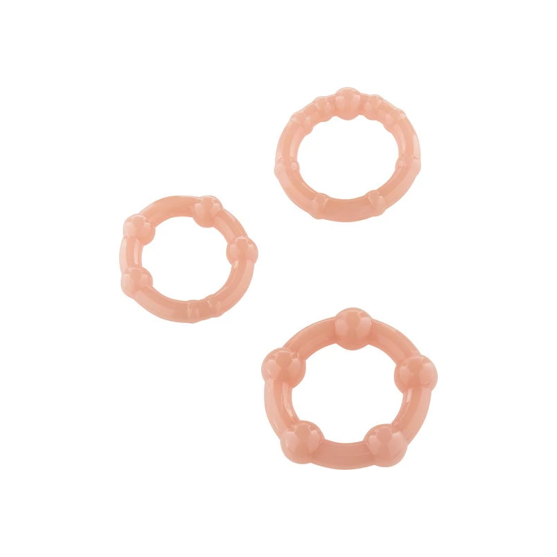 STAY HARD THREE RINGS es un kit de tres anillas de silicona de diferente tamaño, que se adaptan a cualquier tamaño de pene, con los que conseguirás que tu erección sea mucho más duradera, ya que los anillos permiten retardar la eyaculación y mantener tu pene erecto mucho más tiempo.