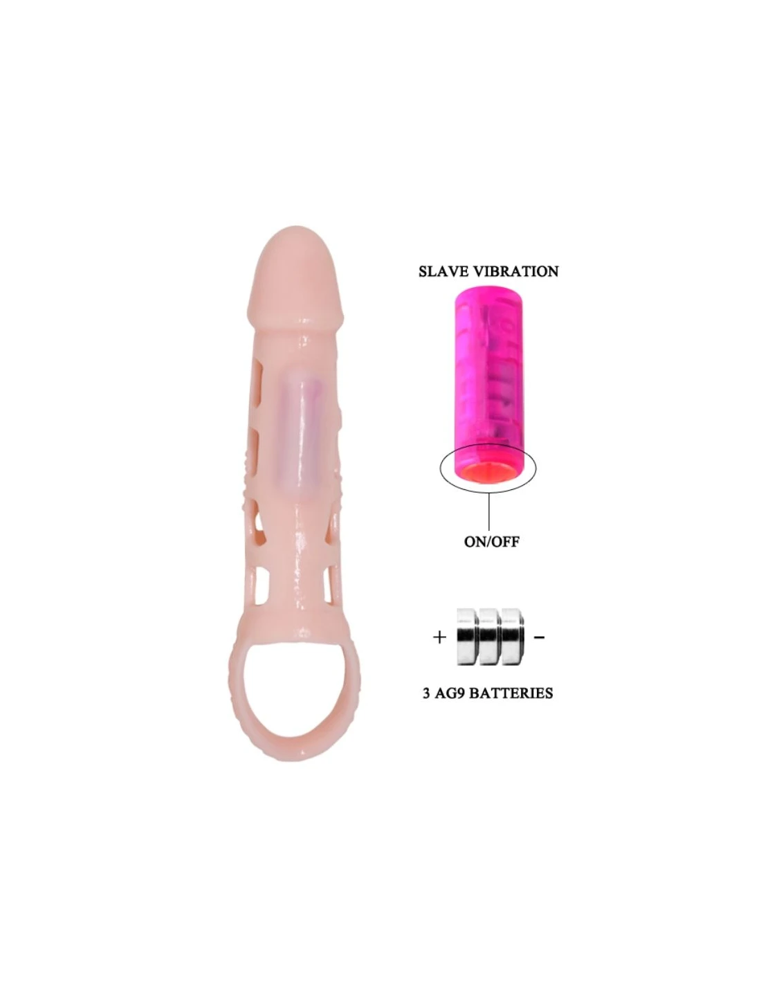 Funda extensora de pene con bala incorporada y strap para los testiculos para que aumente tanto en grosor como en longitud y así aumentar el placer de ambos durante las relaciones. Tiene un diseño realístico y funcional ya que los relieves de los contornos sirve como estimulante para tu pareja y está fabricado en TPR de alta calidad.