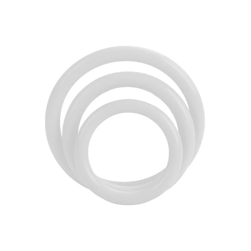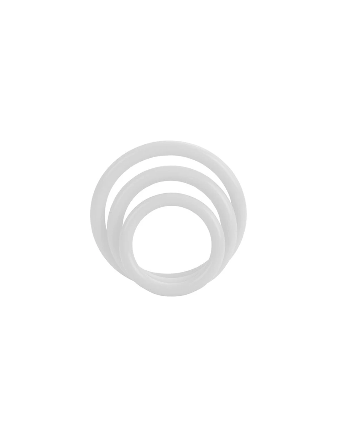 Set de tres anillas de diferentes tamaños, con ellas, conseguirás erecciones más firmes y más duraderas con orgasmos más intensos. También son indicadas para controlar la eyaculación precoz. Está fabricada con silicona muy flexible y agradable al tacto. Libre de látex y falatos.