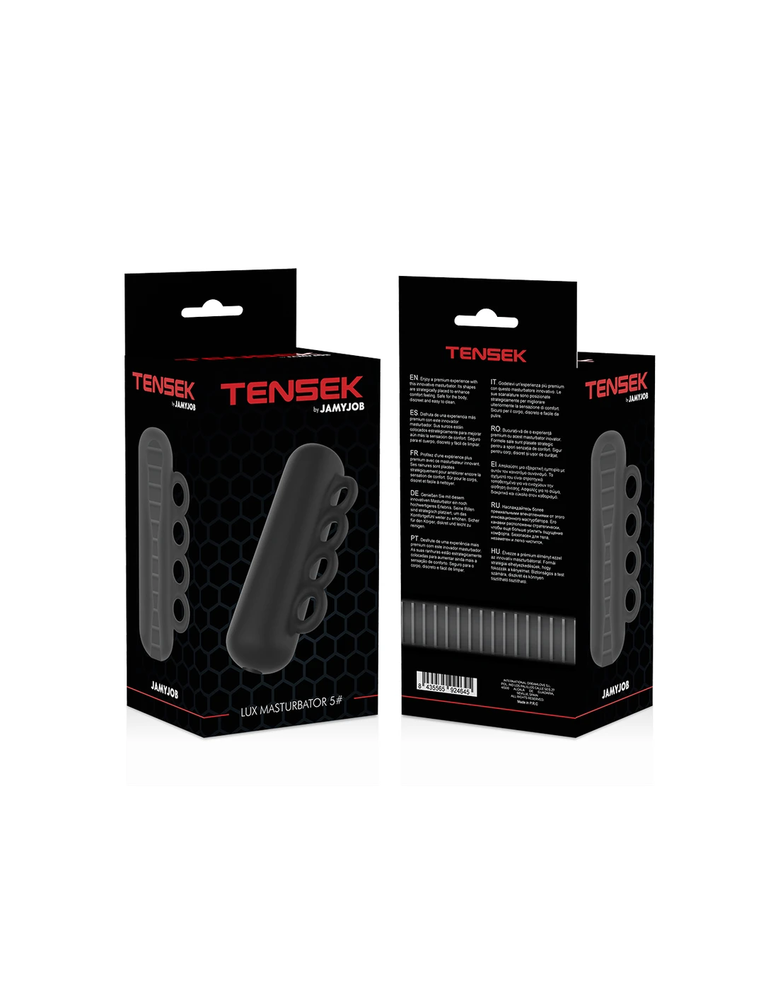 Disfruta de una experiencia completamente nueva. El innovador modelo TENSEK 5 se une a la línea JAMYJOB de masturbadores y presenta un diseño único completamente negro con agarre facil.