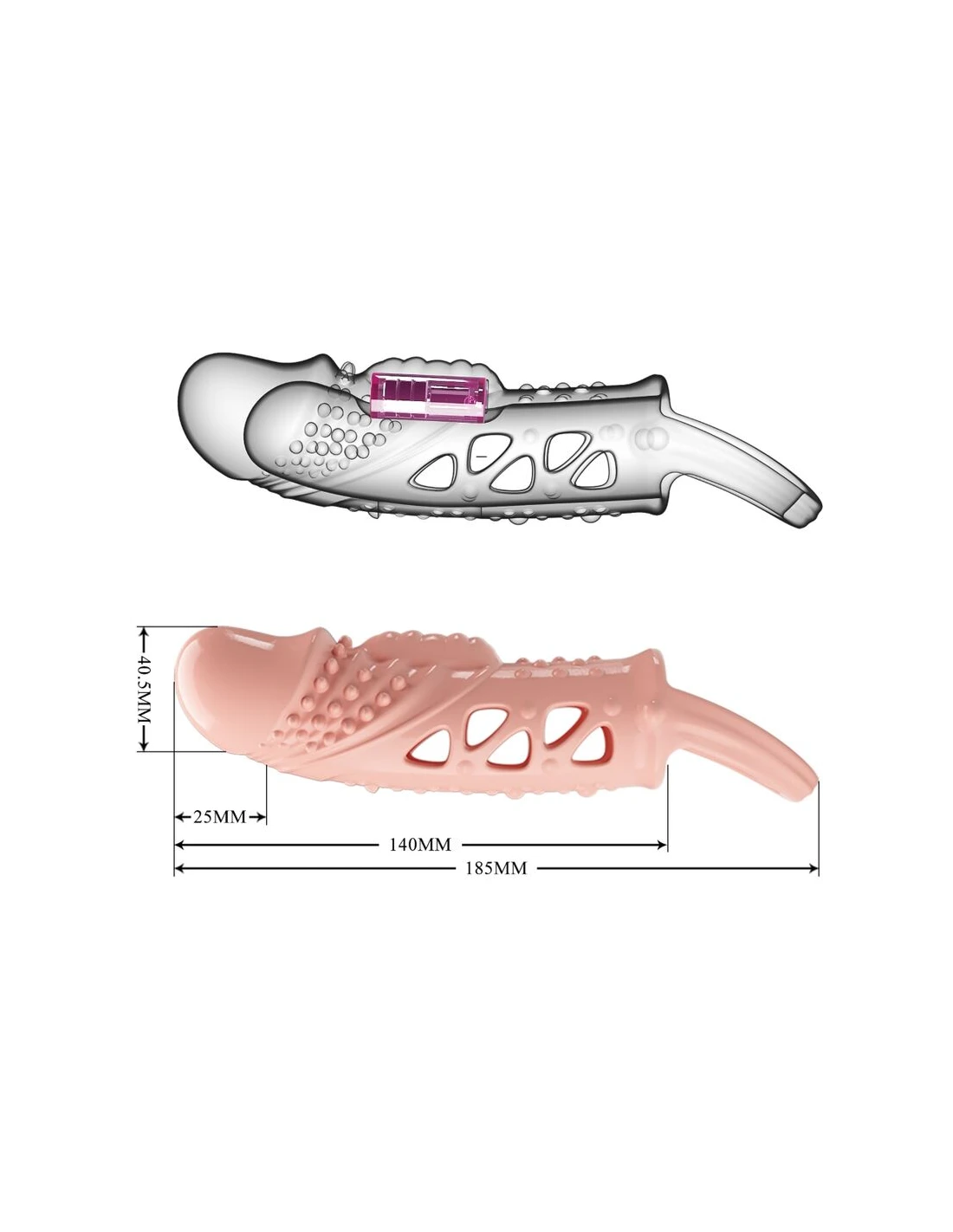 - Funcionamiento: funda de pene con vibración