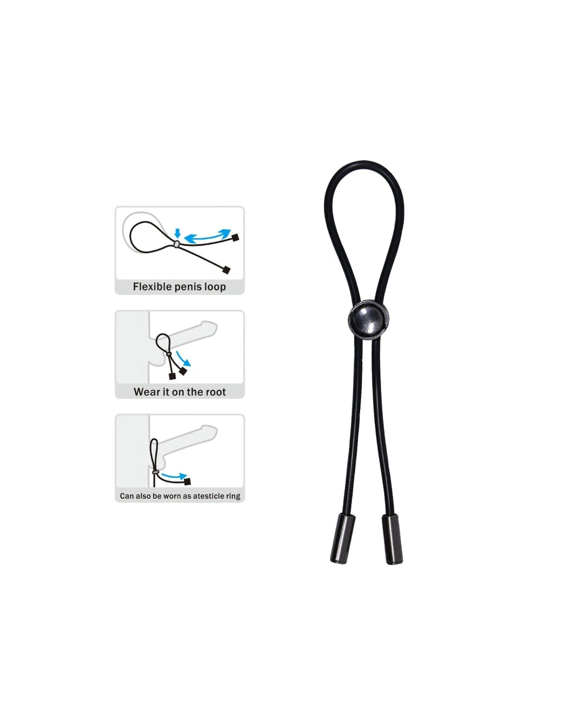 El bucle para el pene está controlado por una perla sintética para que pueda colocarse sobre el pene y los testículos. Puedes ajustar individualmente el diámetro al tamaño del pene. De esta manera, la intensidad del efecto de restricción del flujo sanguíneo se puede ajustar según los deseos personales.