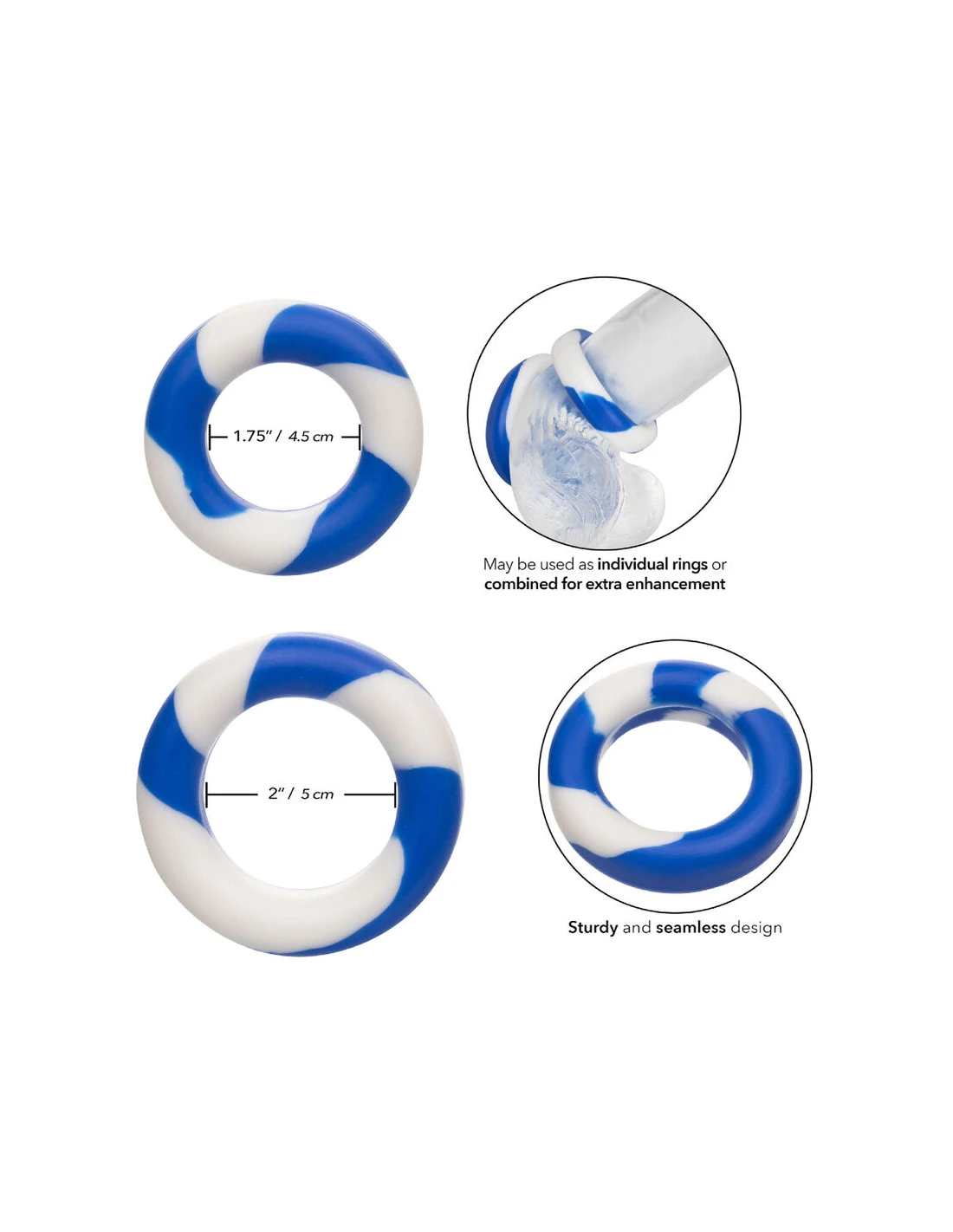 Explora un placer y rendimiento elevados, ya sea aumentando la resistencia o intensificando las sensaciones. Prioriza la sensibilidad aumentada y el placer prolongado con este versátil y efectivo conjunto de anillos Admiral 2, que se adapta a tus deseos y eleva tus experiencias íntimas.