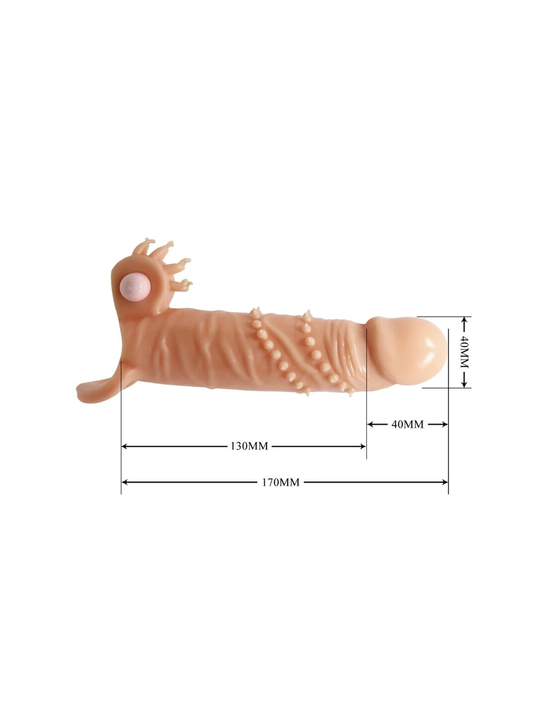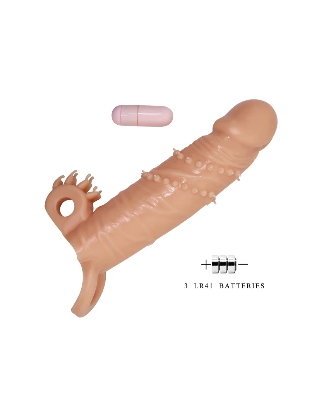 La mejor funda para el pene y extensión para una mayor longitud y un mejor rendimiento sexual Disfrute de las vibraciones y mejore el rendimiento con la funda vibradora para el pene Pretty Love. Esta funda para el pene que mejora la erección y promete placer, de 6,7 pulgadas de largo, está hecha de TPR suave y se fija en su lugar mediante un lazo de bola. Mantiene su erección más dura y duradera por más tiempo, incluye una bala vibradora para estimular a su pareja con cada movimiento. La bala está diseñada para estimular el clítoris con vibraciones que la impulsarán de un orgasmo al siguiente. Esta funda de extensión para el pene tiene una punta sólida para brindarle esa longitud adicional cuando la desee.