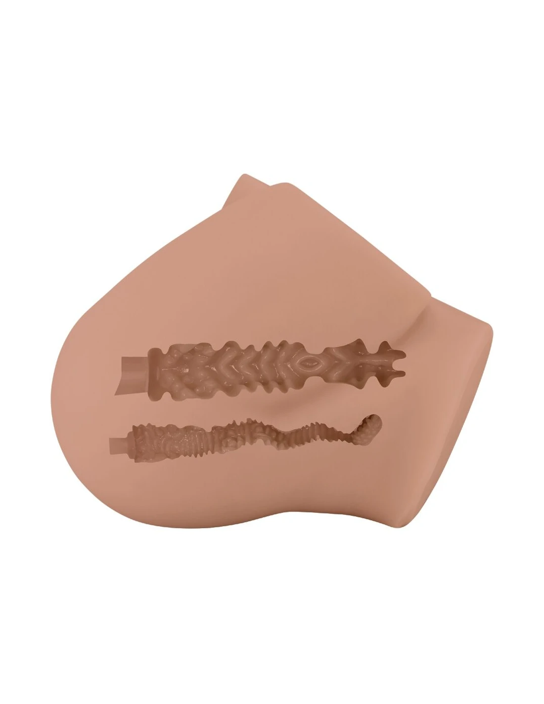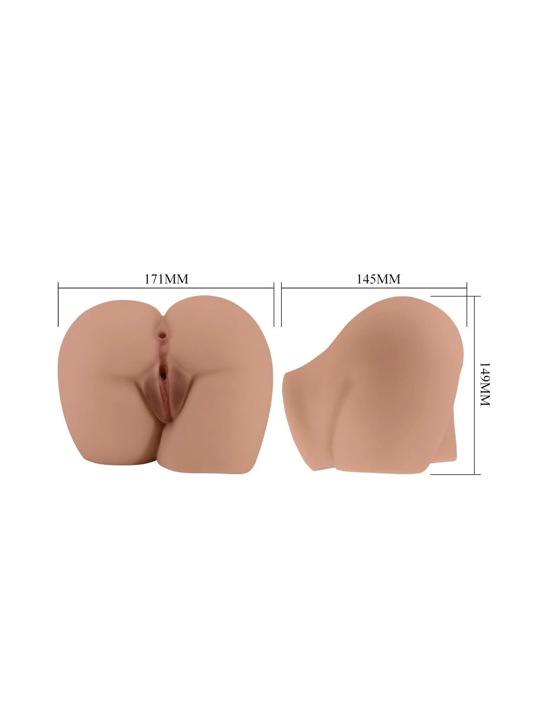 Agarra, aprieta, acaricia y azota este masturbador de trasero y vagina realista. Este juguete sexual súper ajustado de dos orificios brinda la experiencia perfecta y llena de placer. Deslízate profundamente dentro del culo apretado y el coño realista mientras te deslizas dentro de su túnel de textura intrincada. Las estrías finas y las protuberancias estimulantes rodean tu pene mientras acaricias de un lado a otro. Su coño apretado y su culo de melocotón están esperando ser llenados, para una noche tras otra de satisfacción