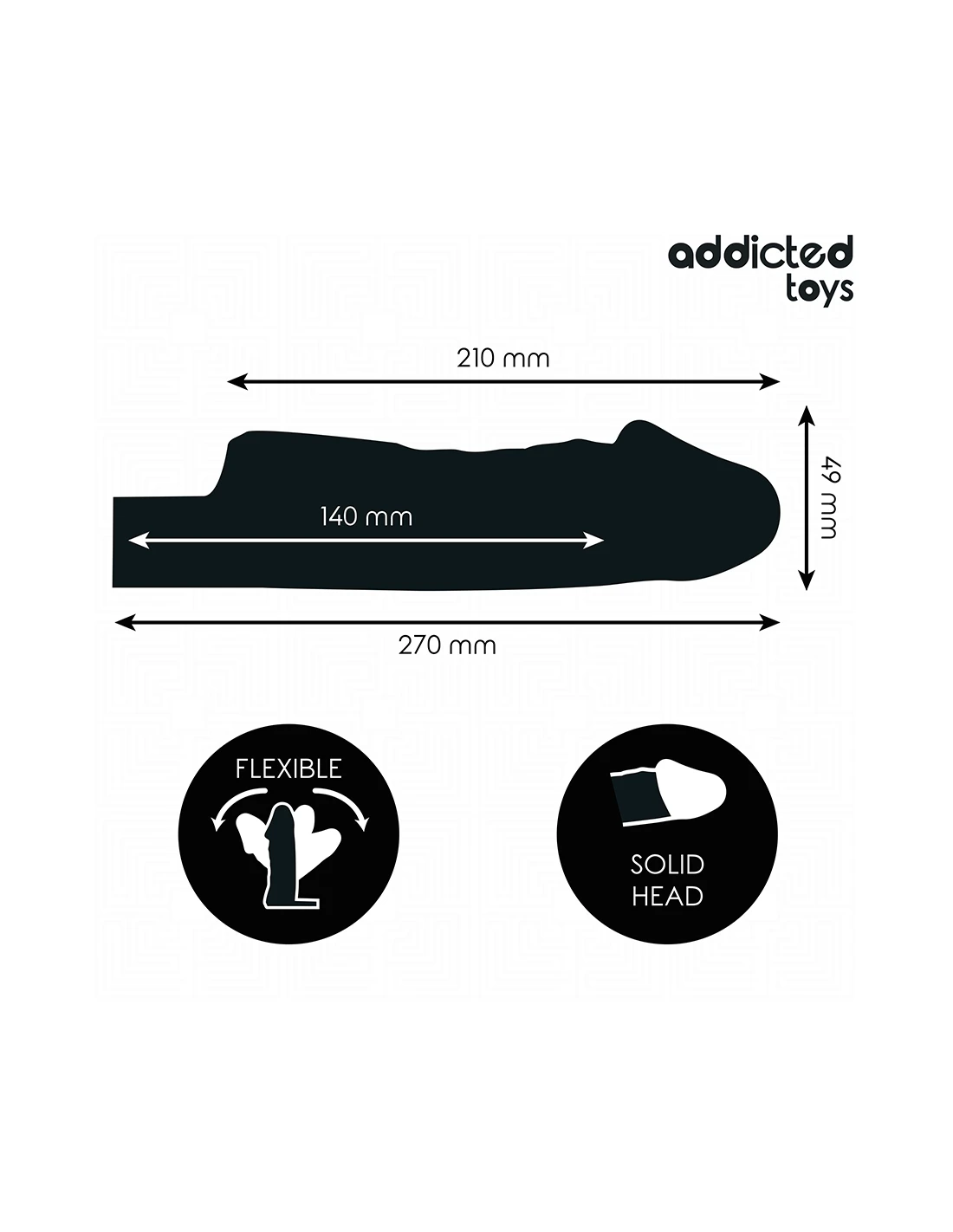 - Longitud total: 270 mm (27 cm), proporcionando una extensión considerable para quienes buscan alargar su pene de manera temporal durante las relaciones sexuales.