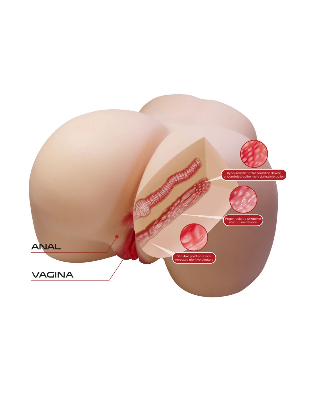 Este masturbador cuenta con dos entradas realistas: una vagina estrecha, retorcida y llena de nervaduras internas que estimulan cada movimiento, y un ano ajustado para quienes buscan un desafío extra de presión y realismo. Su túnel interno está recubierto de texturas en espiral y nódulos de placer estratégicamente colocados para intensificar cada penetración y llevarte a clímax más profundos.