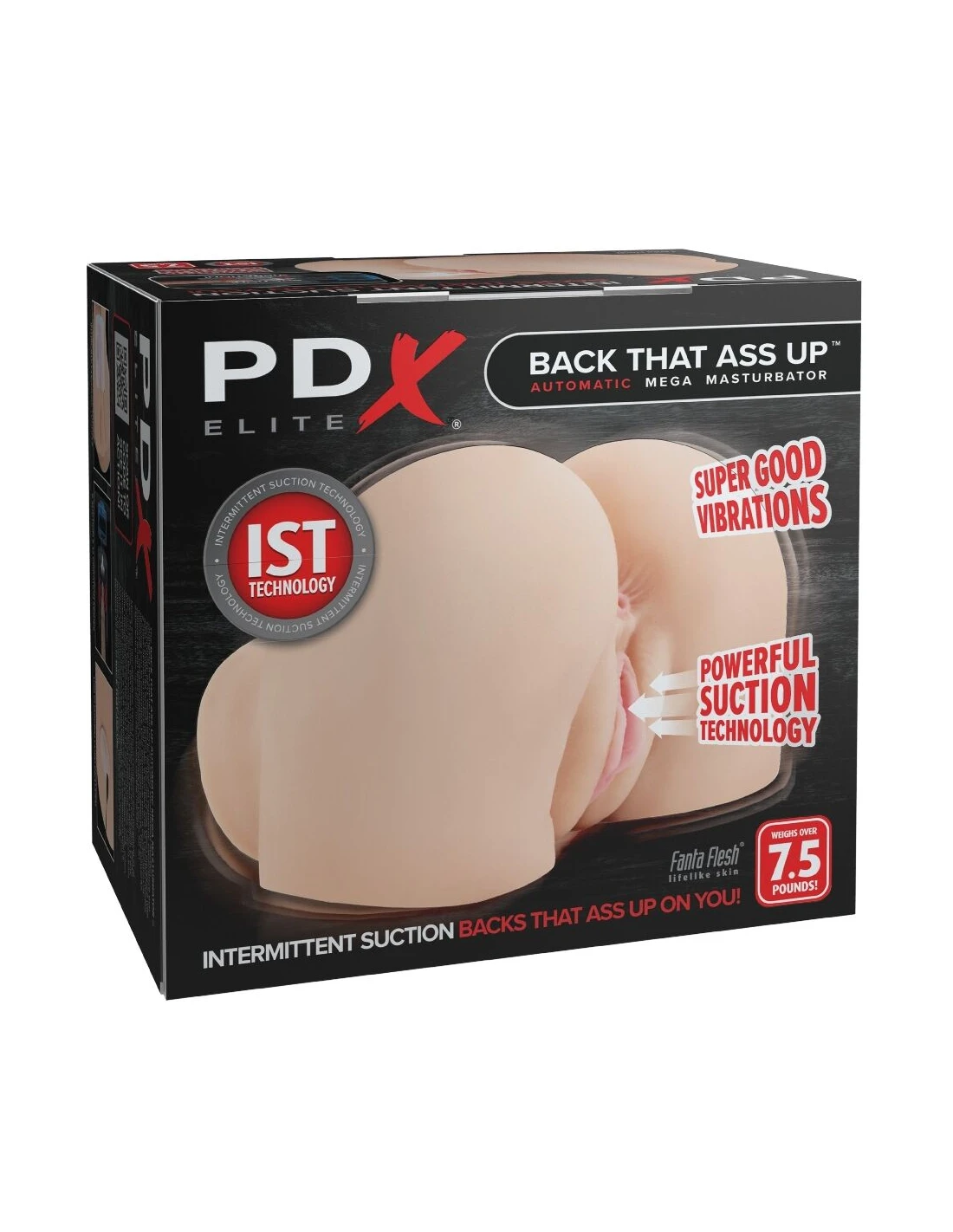 El MEGAMASTURBADOR AUTOMÁTICO BACK THAT ASS UP revoluciona el mundo con nuestra increíble Tecnología de Succión Intermitente (IST), diseñada para brindar una experiencia orgásmica que añade una potente succión. Está equipado con dos motores de última generación que ofrecen 6 modos de succión y 12 de vibración, lo que te permite personalizar tu experiencia con una combinación de intensidades, patrones de vibración y succión. ¡La potente succión se siente increíble y te atrae hacia ti para una experiencia como ningún otro masturbador en el mercado! Hecho con nuestro exclusivo material Fanta Flesh® y con un peso de más de 3.4 kg, este megamasturbador ofrece una sensación increíblemente realista, imitando el tacto y la textura de la piel real. Además, sus detalles ultrafinos le brindan un nivel de realismo que lo distingue de otros masturbadores del mercado. Es recargable e incluye un práctico cable de carga USB para que siempre esté listo cuando tú lo estés. Ya sea que se use para jugar en solitario o para agregar emoción con una pareja, la combinación de succión, vibración y un culo increíble promete ofrecer resultados que devoren semen. Esperamos que estés listo, ¡porque es hora de darlo todo!