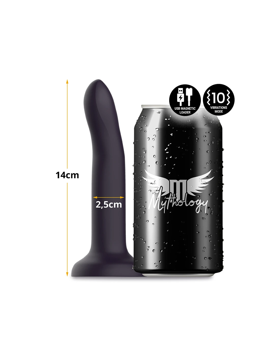 MYTHOLOGY consta de una gama de dildos, todos ellos de silicona de alta gama, disponibles en dos versiones (con vibración y sin vibración) y distintos tamaños (S, M, L). La versión con vibración, recargable, compatible con la tecnología Watchme.