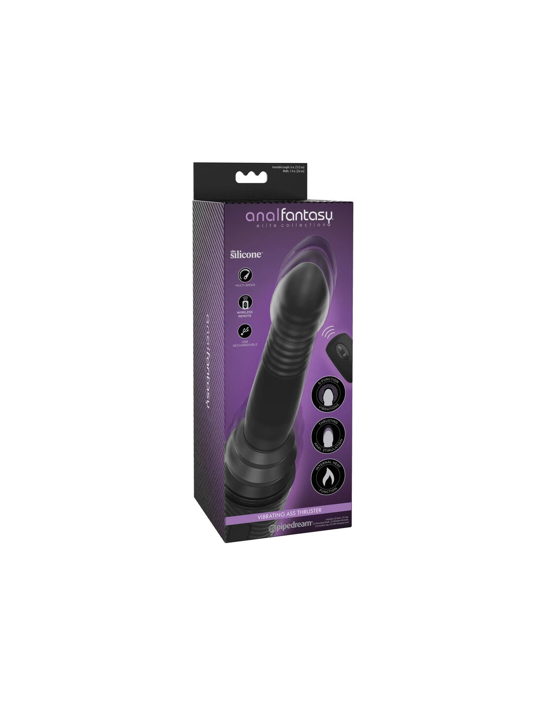 ppCuando buscas avanzar al siguiente nivel en tus juegos anales Anal Fantasy Elite Collection es la primera opcion para un maximo placer Fabricado con nuestra silicona Elite este vibrador anal es body safe sin ftalatos y esta preparado para que puedas jugar duro Usa lo ultimo en tecnologia es USB recargable ergonomicamente disenado para una maxima comodidad y satisfaccion garantizadas Perfecto para cualquier genero esta coleccion unisex viene preparada para ofrecerte resultado increiblemente explosivos pulliCon control remoto liliincreiblemente potente liliFuncion calor Alcanza hasta los 40 º liliFuncion batida liliCon panel de control liliCarcasa incluida para que puedas guardarlo cuando no lo used liliCon ventosa para adherir a casi cualquier superficie plana liliLongitud 305 mm liliAncho 64 mm liliLongitud insertable 152 mm liliPeso 44508 grpEl vibrating Ass Thruster es el vibrador anal con batida inhalambrico mas avanzado que se haya disenado nunca Aparentemente cuando lo vez parece que se trata de un altavoz Bluetooth pero una vez que le quitas la tapaveras un increible vibrador con ventosa efecto calor y que ademas tiene la funcion batida Con 7 modos de vibracion y 7 de de batida para elegir las posibilidades son ilimitadas ppEl Ass Thruster incorpora una potente bala vibradora en la punta la funcion batida esta accionada por un potente motor japones recargable y su funcion calor hace que alcance hasta los 40 grados con tan solo pulsar un boton Con botones distintos para vibracion batida y calor tendras el control absoluto de la diversion Su ventosa ademas pues quitarla por si quieres usarla con tus manos o por el contrario vivir una salvaje experiencia sin ellas ya que se adherira fuertemente casi a cualquier superficie plana ppAdemas es recargable y podras usarlo durante dos horas con tan solo hora y media de carga ppSe recomienda su limpieza despues de usar con limpiador de juguetes y agua tibia Se recomienda el uso de lubricante para una experiencia inigualable pp