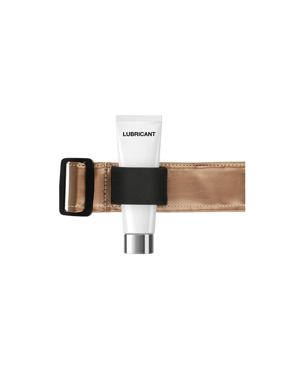 El arnés dispone en los laterales de una goma elástica que podrá ser utilizada para colocar el control remoto “Watchme”, un bote de lubricante, aceite o lo que prefieras. Este elástico está colocado a la altura de la cadera, a ambos lados del cuerpo para que tanto diestros como zurdos puedan utilizarlo cómodamente.
