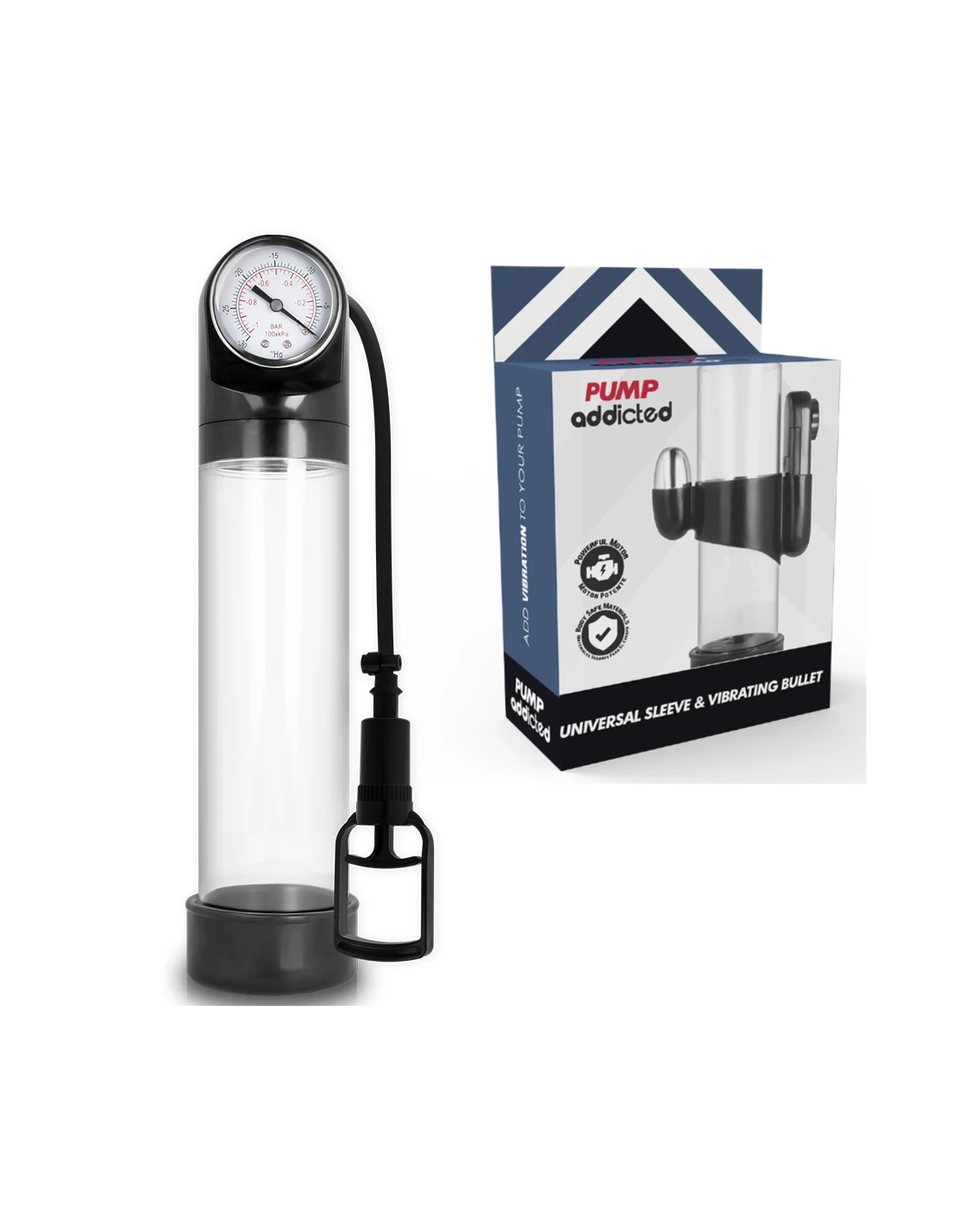 Pump Addicted ayuda a alcanzar la erección de una forma más sencilla utilizando un sistema de vacío que hace que la sangre se concentre en el pene cuando todavía está flácido. La erección se alcanza y mantiene mediante un sellado cómodo y hermético en la base del cuerpo, justo en la unión del pene con el pubis, gracias al cual se mantiene la sangre en el tronco. Gracias a la manga, el sellado es firme, cómodo y estrecho sin apretar.