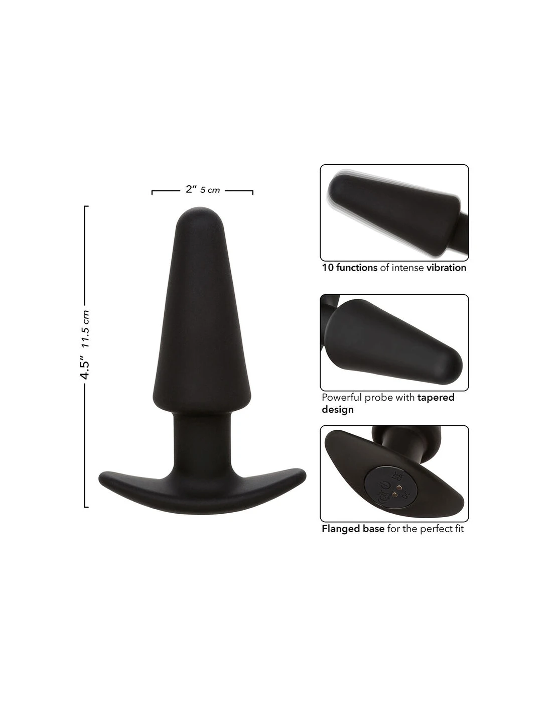 CALEXOTICS - ROCK BOTTOM PLUG ANAL CÓNICO 10 VIBRACIONES SILICONA NEGRO