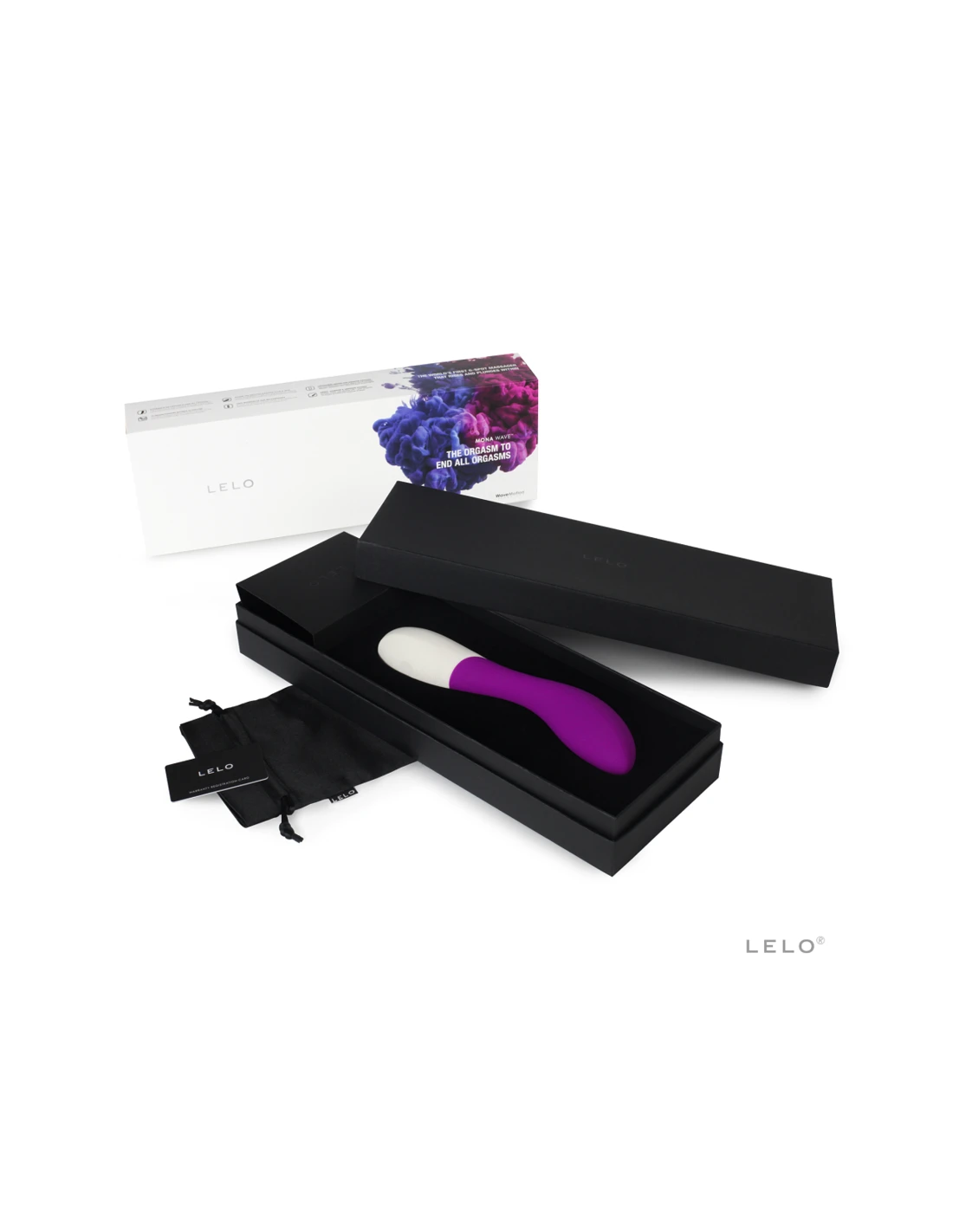 Asimismo, MONA WAVE™ se presenta en una elegante caja de regalo que contiene una lujosa bolsita de satén para guardarlo, además de un cargador, el manual de usuario y la garantía completa LELO de 1 año y garantia de calidad de 10 Años.