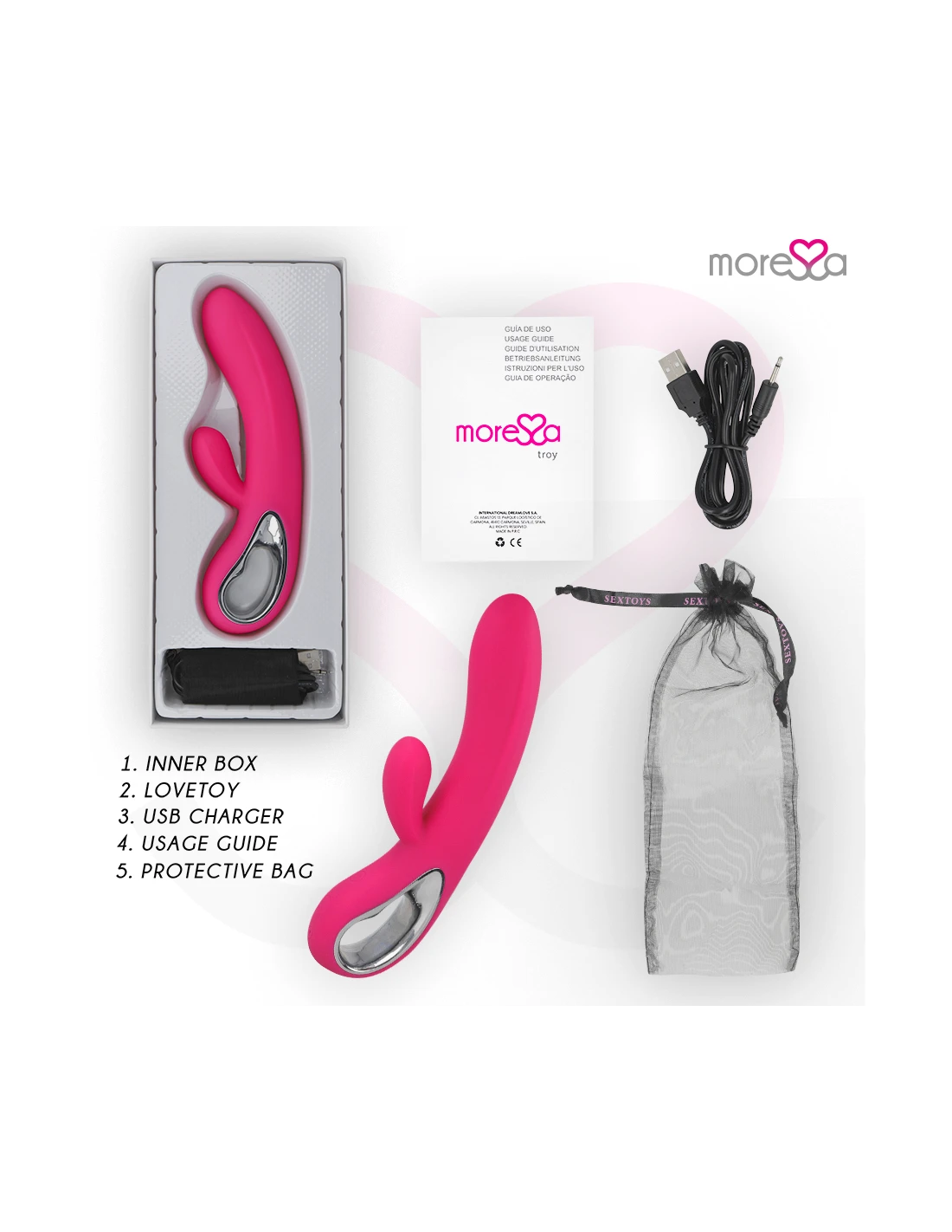 Moressa es la marca referente por su diseño, calidad y tecnología. Hemos desarrollado un producto innovador y mimado cada proceso de fabricación para conseguir el mejor resultado.Moressa es símbolo de energía, fuerza y garantía. Comprar un Sextoy Moressa es sentirse reflejado con la actualidad. Cada Juguete Moressa te transportara a diferentes sensaciones. Un resultado inigualable gracias a la silicona Premium confortable y los diseños ergonómicos.