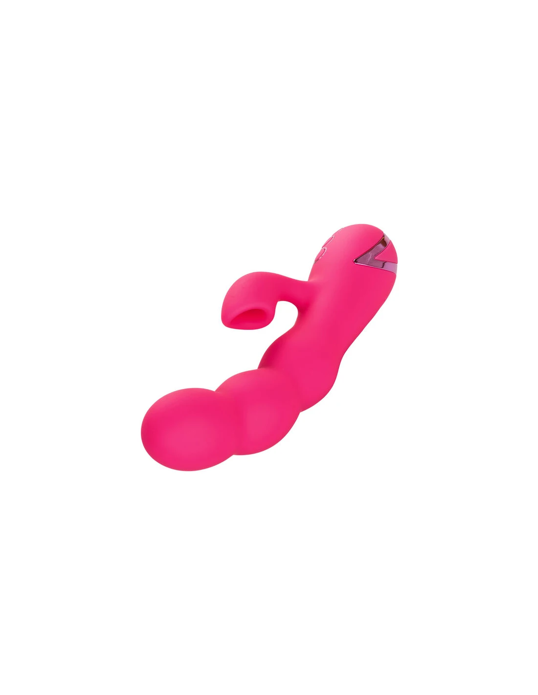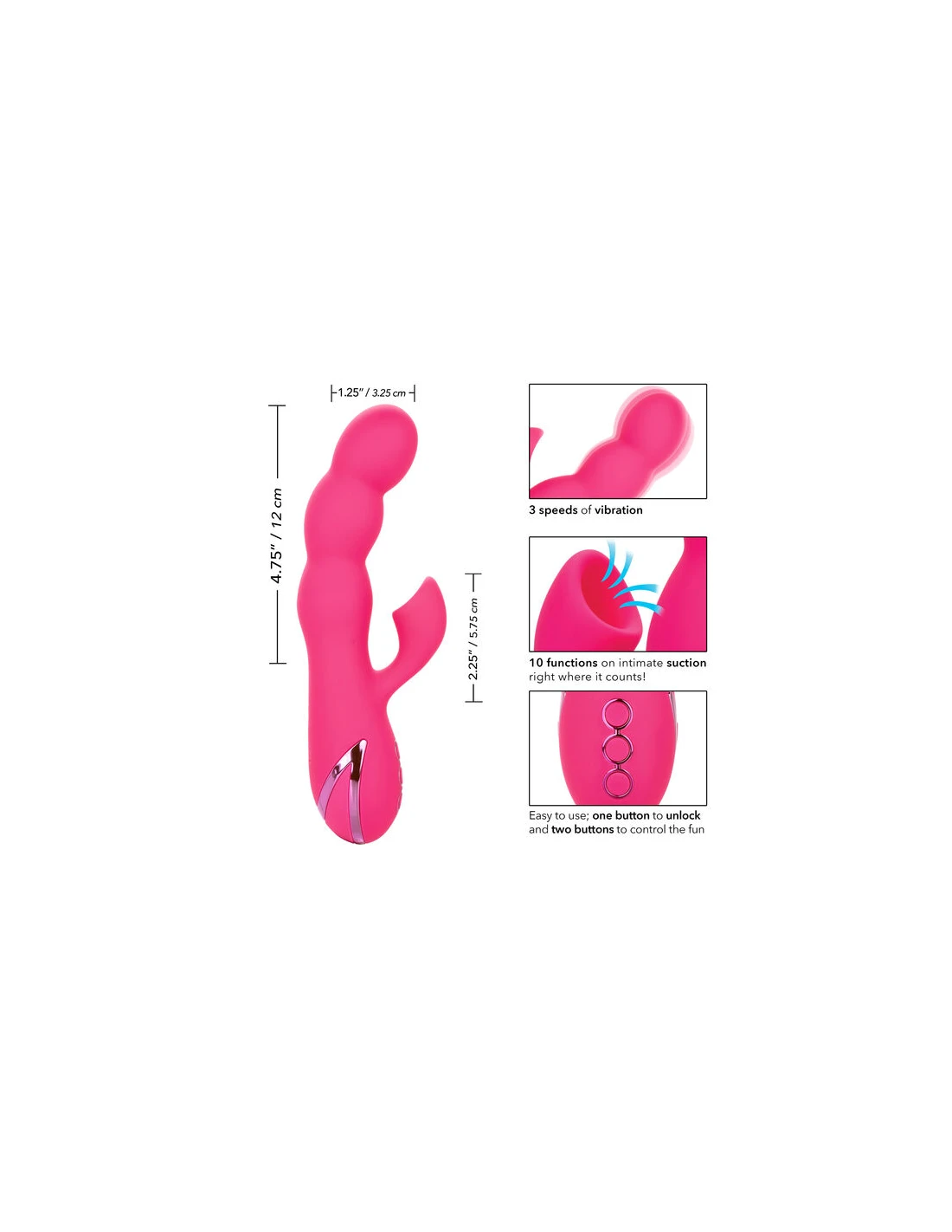 El estimulador tiene 10 funciones de succión para onda tras onda de estimulación externa orgásmica. El eje tembloroso de este deslumbrante conejo utiliza un motor de vibración intensa para una estimulación interna profundamente satisfactoria. Las vibraciones flexibles del tickler se pueden usar independientemente de las funciones de succión para un placer verdaderamente personalizable. ¡Los giros que hacen temblar las rodillas en este ambiente lúdico no son para los débiles de corazón! Los motores de triple potencia emiten profundas vibraciones retumbantes y una potente succión.