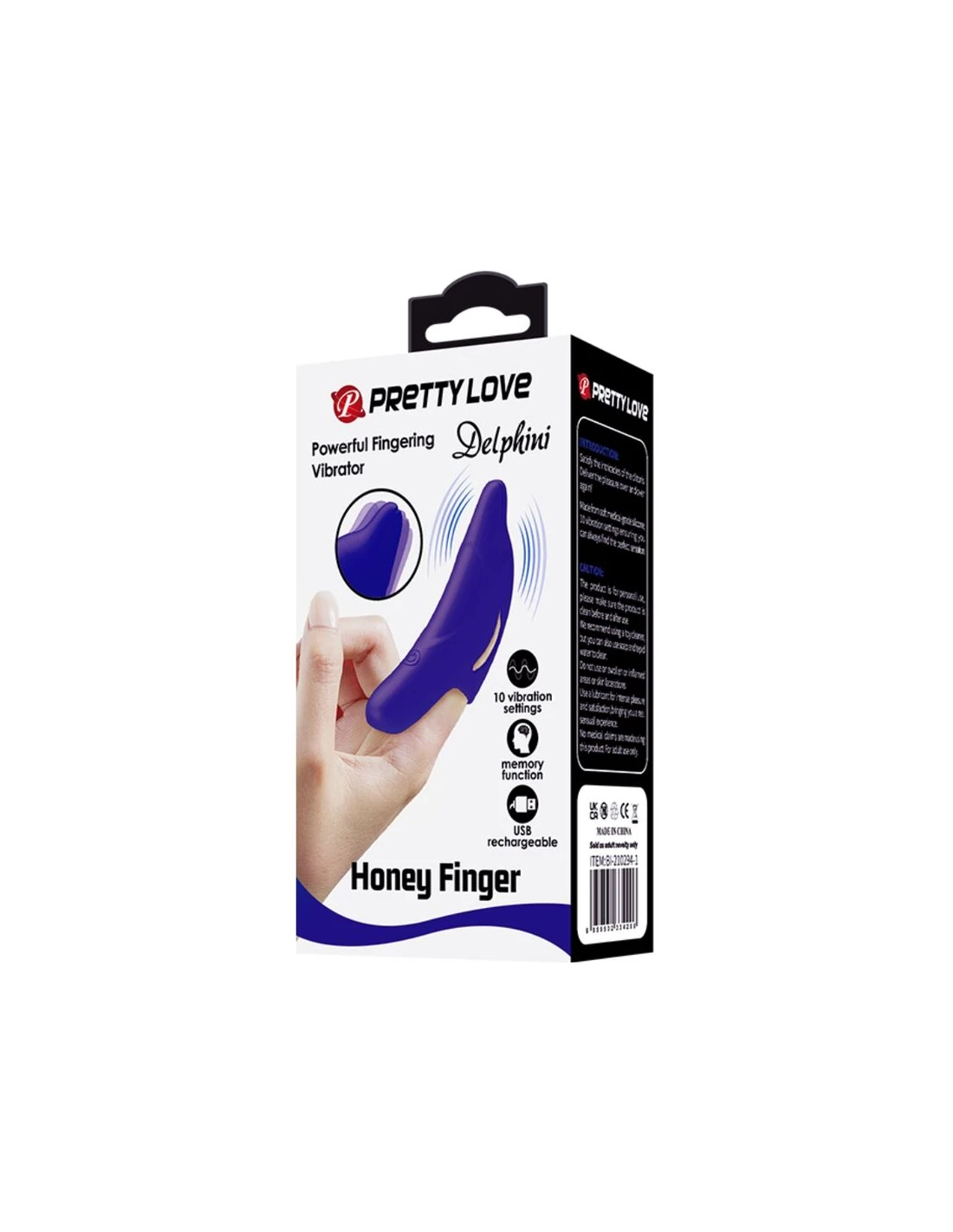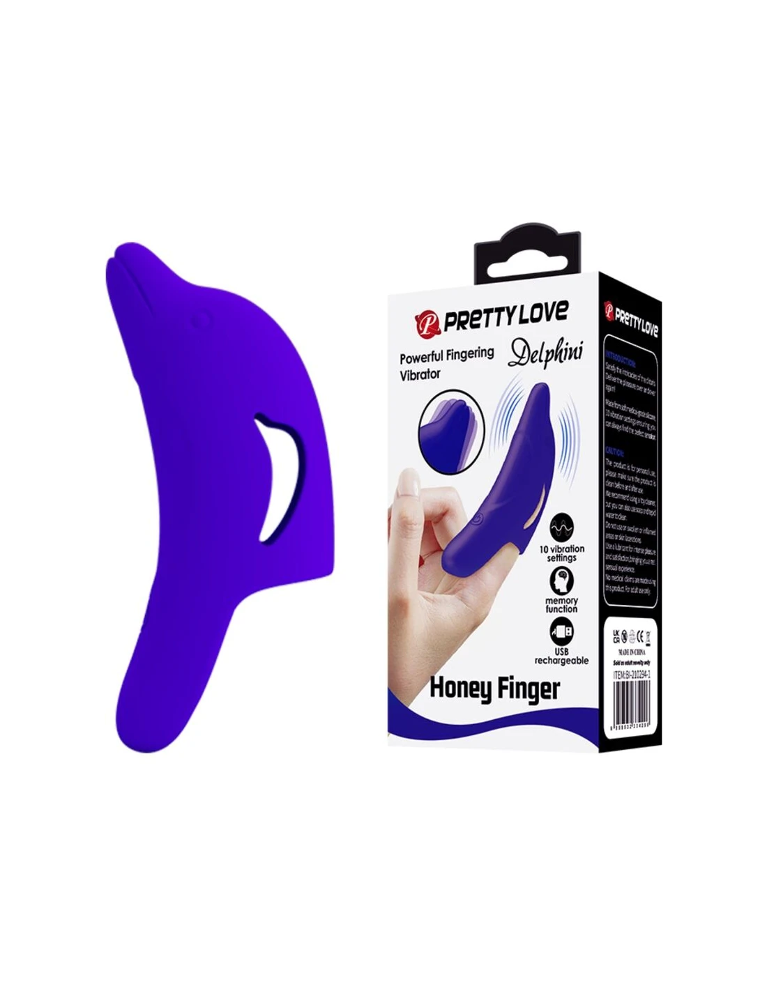 Seguro para el cuerpo y fácil de limpiar, siente tu camino hacia la cima con este vibrador de dedo de 10 funciones de silicona de delfín de Pretty Love.