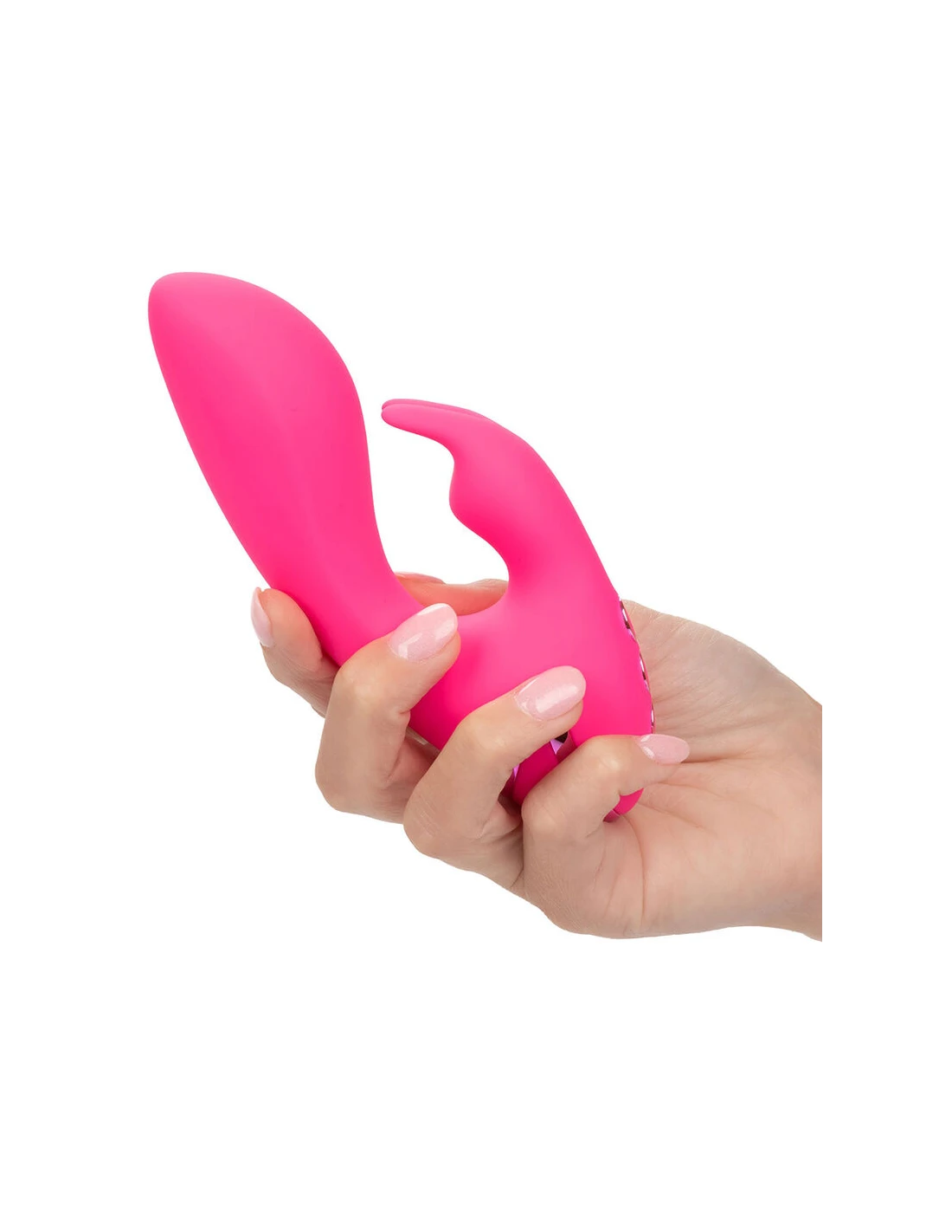 - Estimulador dual potente, compacto y vibratorio con orejas de conejo parpadeantes.