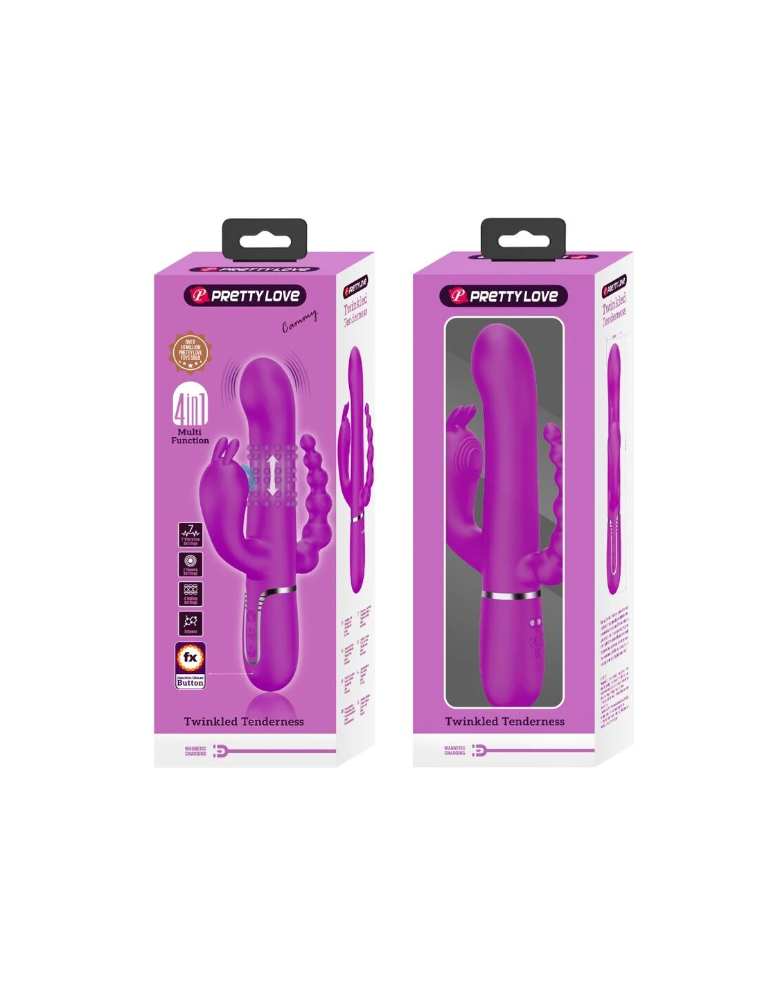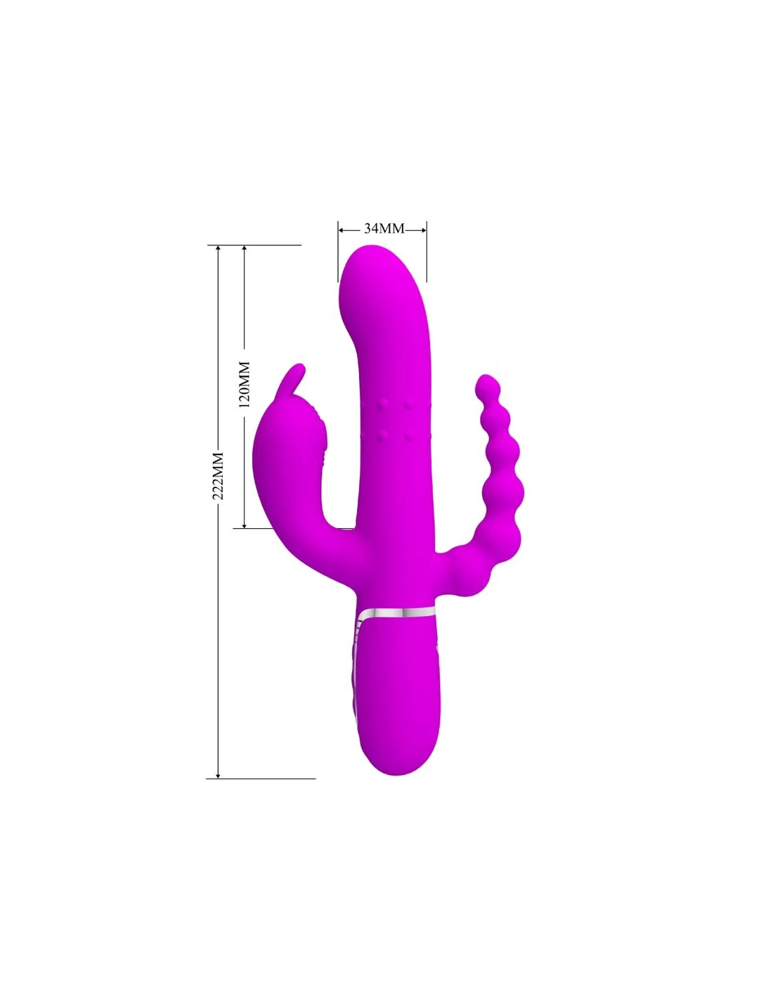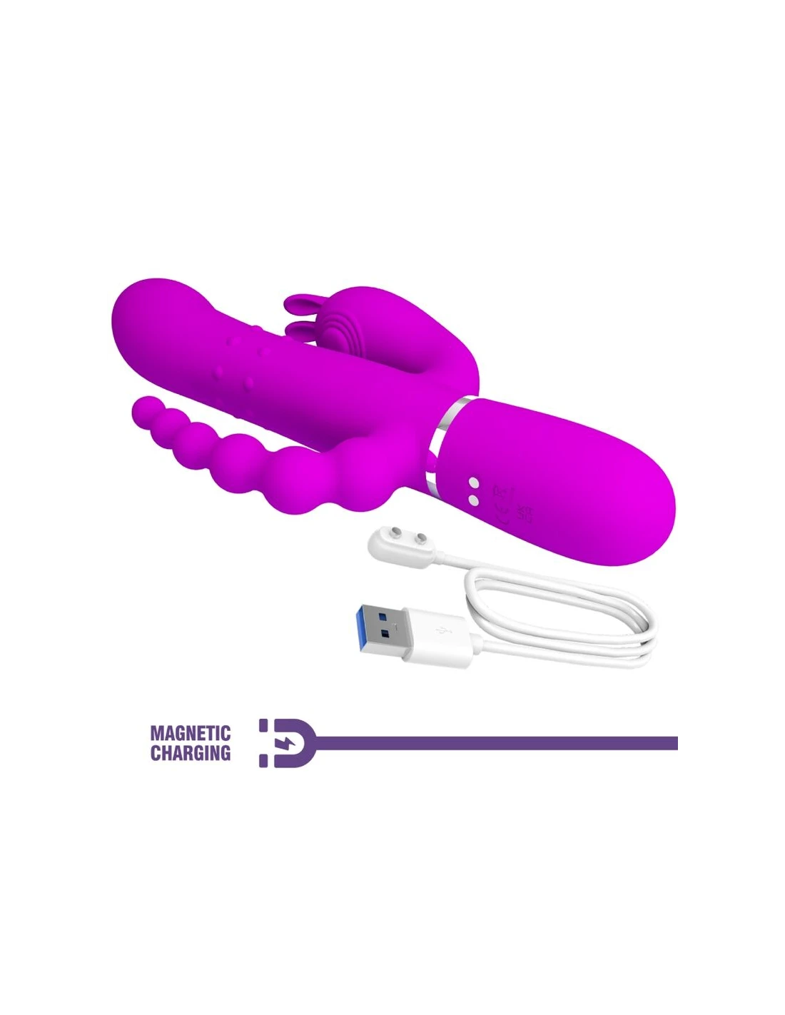El Triple Vibrator de Pretty Love es un vibrador de conejo elegantemente curvado con un estimulador anal, que proporciona estimulación vaginal, del clítoris y anal simultánea.