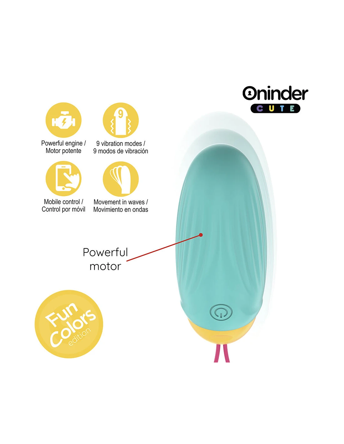 Descubre el nuevo Huevo Vibrador ONINDER CUTE, diseñado para quienes buscan discreción, potencia y estimulación innovadora. Gracias a su tecnología avanzada, este huevo vibrador no solo cuenta con 9 modos de vibración, sino que también incorpora un movimiento en ondas, que ofrece una sensación envolvente y única. Disponible en tres combinaciones de colores vibrantes:
