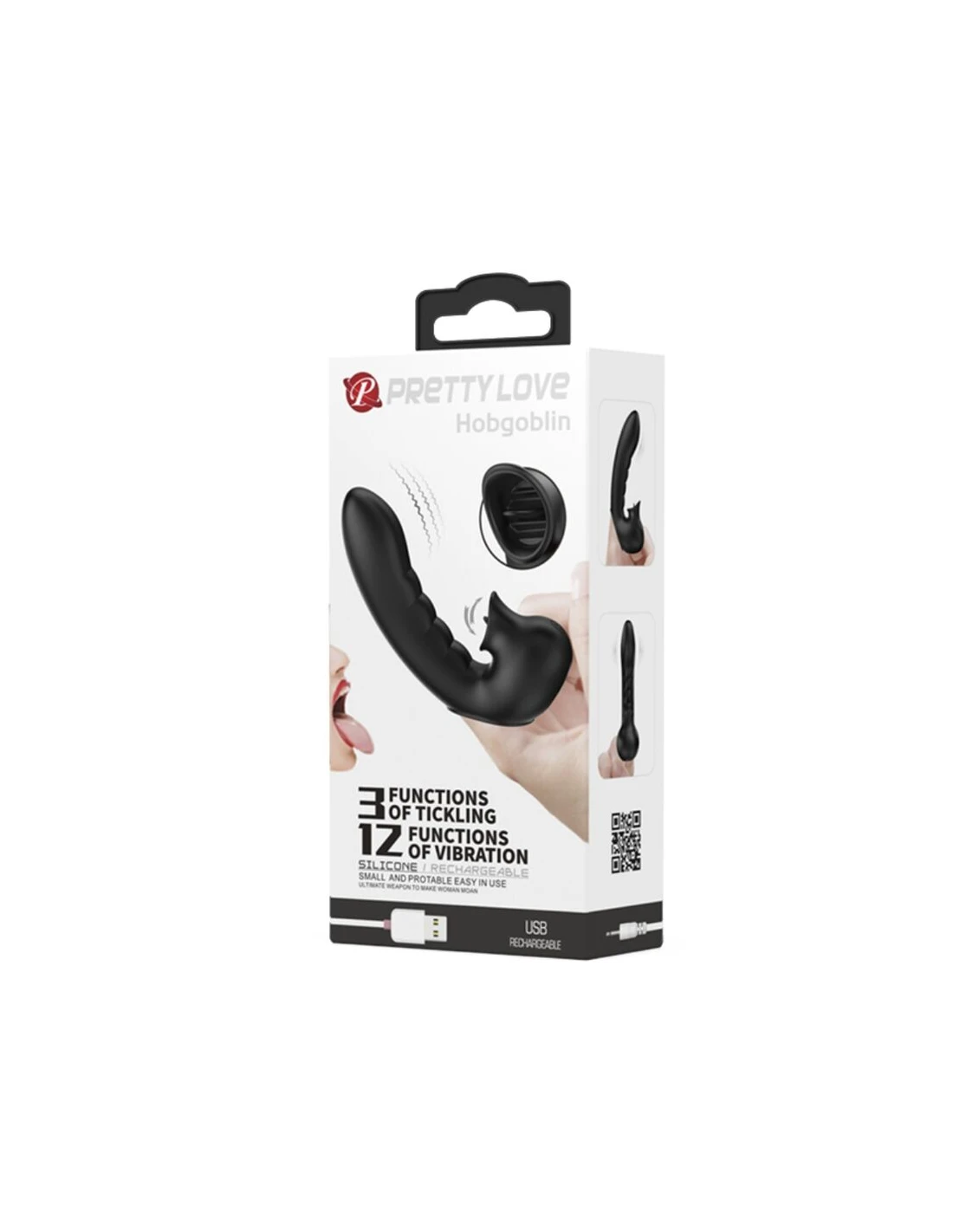 PRETTY LOVE - HOBGOBLIN FUNDA VIBRADORA PARA DEDO 12 VIBRACIONES + ESTIMULADOR CLÍTORIS NEGRO