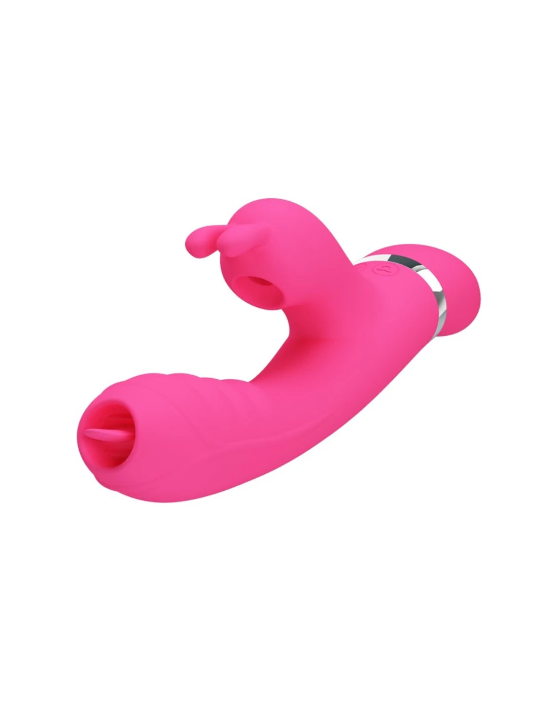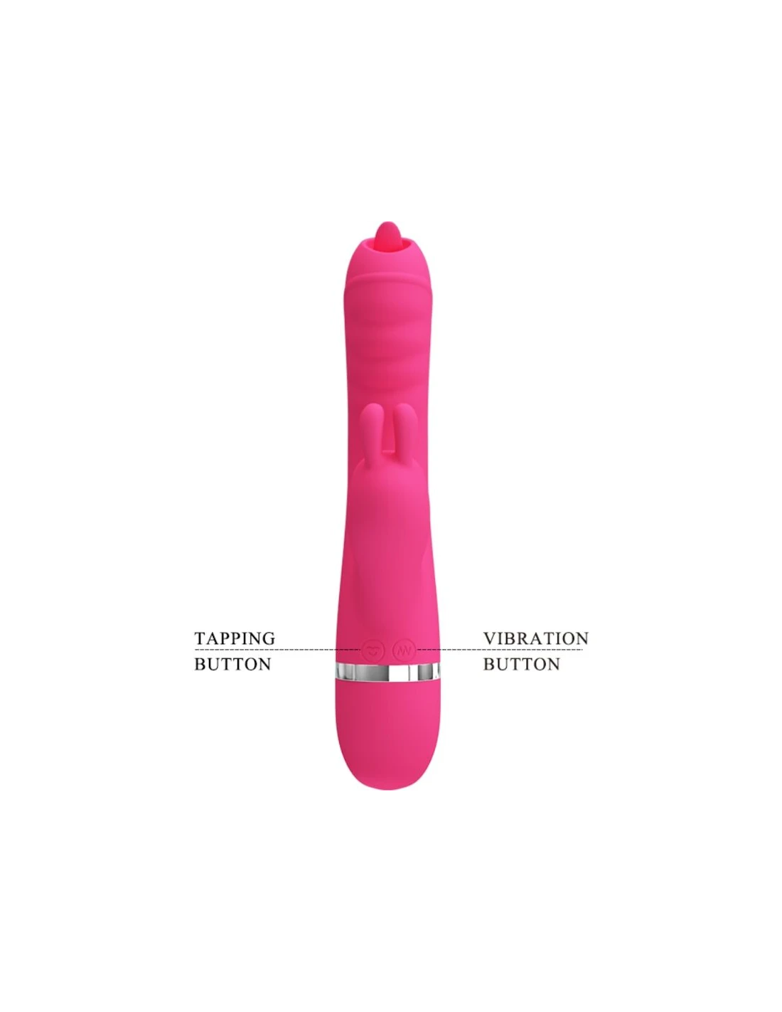 ¿Deseas poder recrear esa increíble sensación de recibir sexo oral mientras disfrutas de la penetración? Tus plegarias tienen respuesta con el vibrador de clítoris Pretty Love que da golpecitos. Este exclusivo conejo tiene un toque moderno, con un estimulador de clítoris que da golpecitos y un potente masajeador vibratorio del punto G para el orgasmo alucinante de tus fantasías. Con lengua de silicona en la cabeza para lamerte y rozarte para una excitación intensa. Una triple amenaza de estimulación, este juguete imperdible ofrece acción de lamer, dar golpecitos y vibrar: deja que este conejo acompañe tus momentos de felicidad sexual.