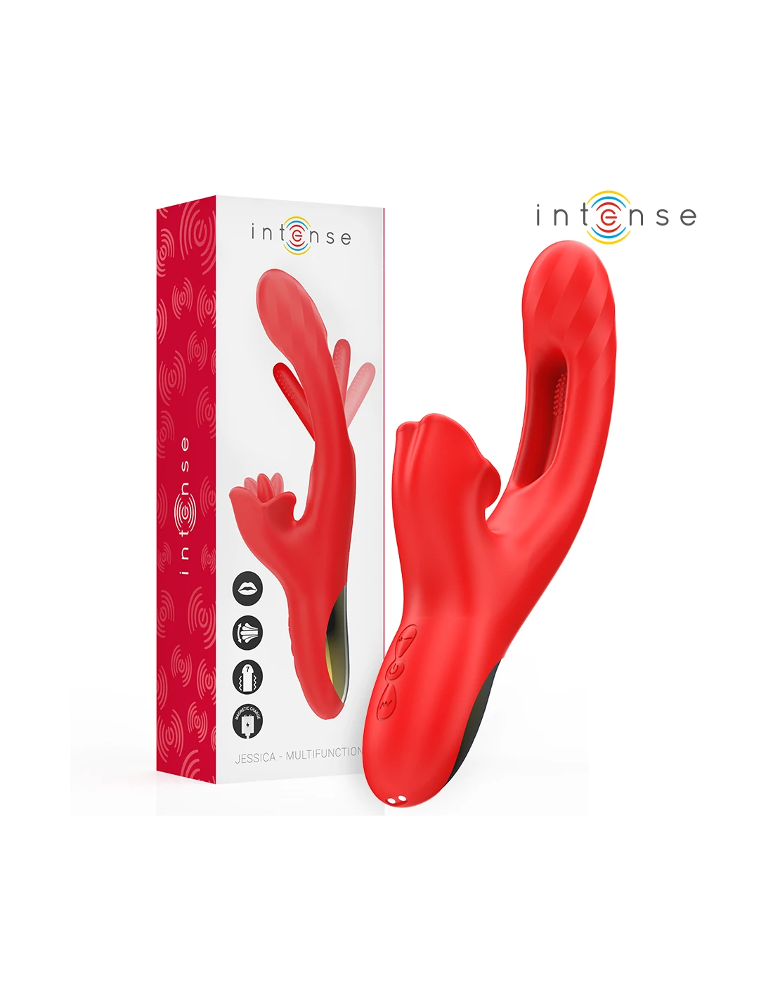 INTENSE - JESSICA VIBRADOR MULTIFUNCIÓN ESTIMULACIÓN CLÍTORIS 24.8 CM ROJO