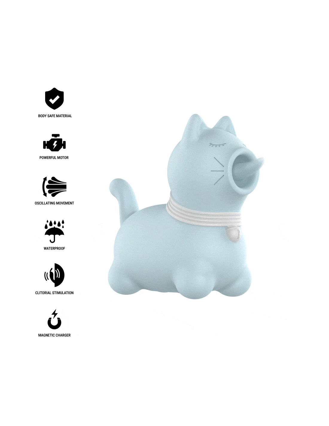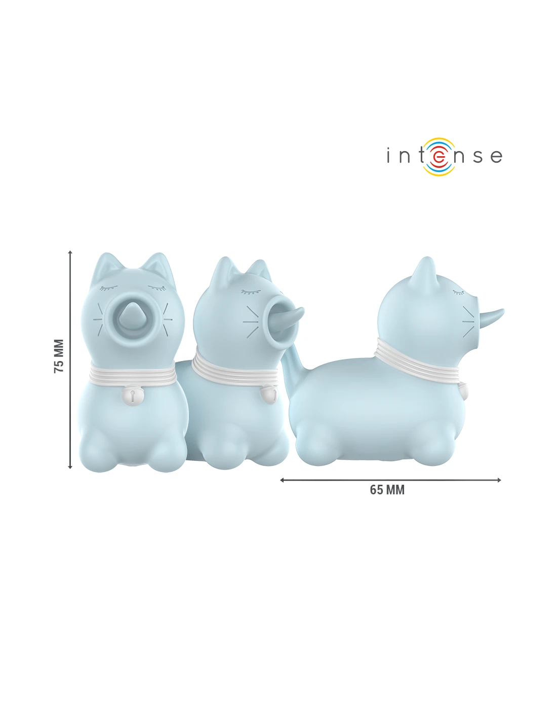 El diseño exterior es dulce, moderno y funcional, con una estética inspirada en la ternura y el juego. Su color azul suave (Pantone similar a 292U) le da un toque de frescura y tranquilidad, sin perder el encanto de un juguete sofisticado y lleno de intención. Es compacto, ergonómico y fácil de sostener, perfecto para uso individual o como parte del juego en pareja.