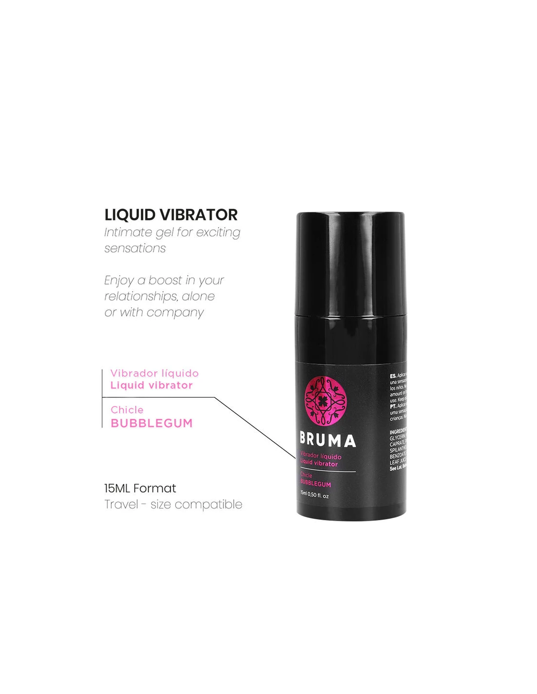 El vibrador líquido sabor chicle de la marca BRUMA es un gel íntimo diseñado para proporcionar sensaciones excitantes y placenteras durante tus momentos más íntimos. Este producto innovador está pensado para darte un impulso extra en tus relaciones, ya sea en solitario o en compañía, haciendo que cada experiencia sea única y memorable.