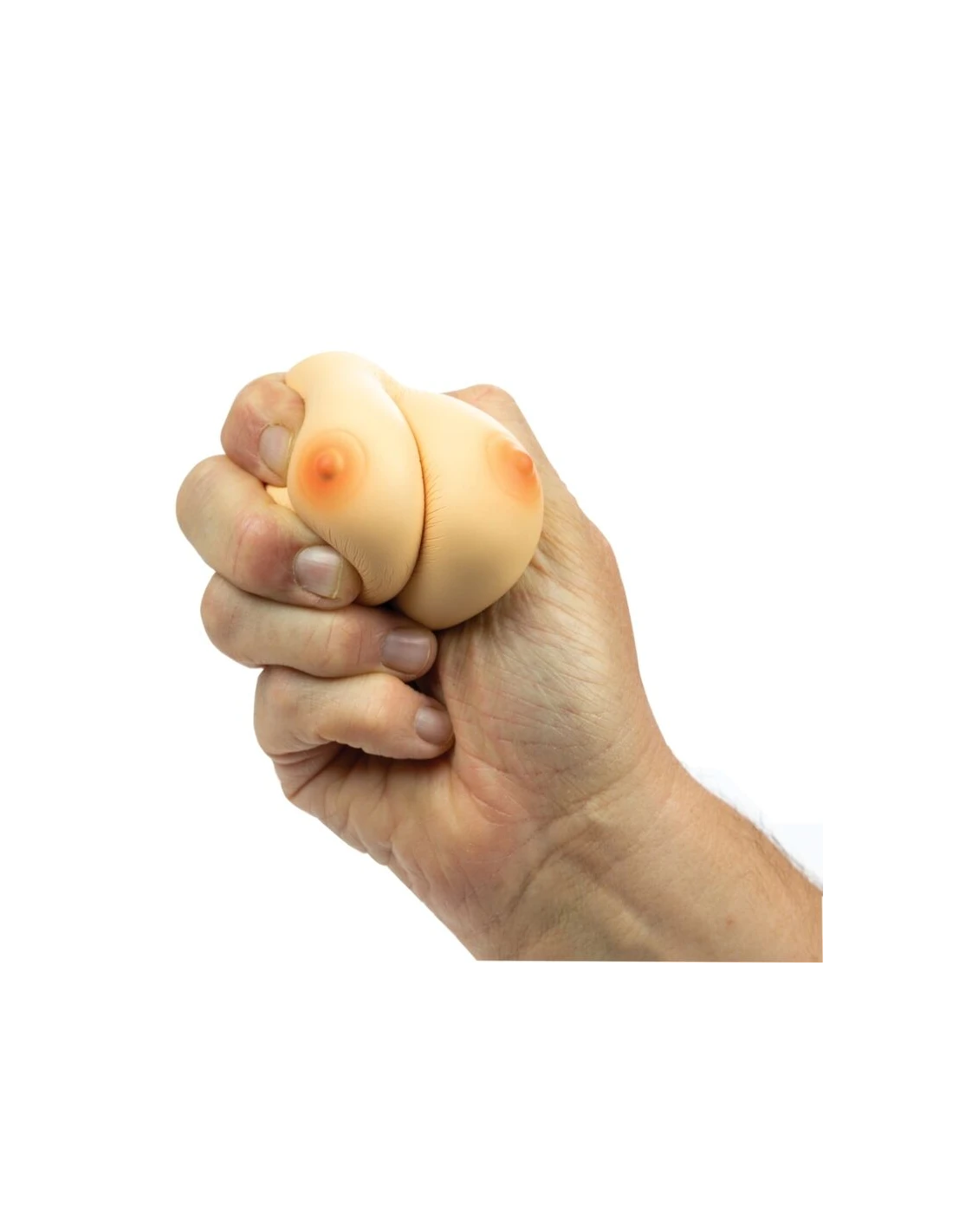 Libera el estrés interno y aprieta con todas tus fuerzas esta bola anti estrés con forma de pechos.
