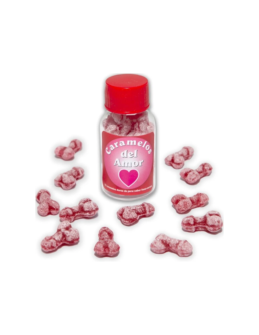DIABLO PICANTE - 12 CARAMELOS DEL AMOR FORMA PENE FRESA/CEREZA