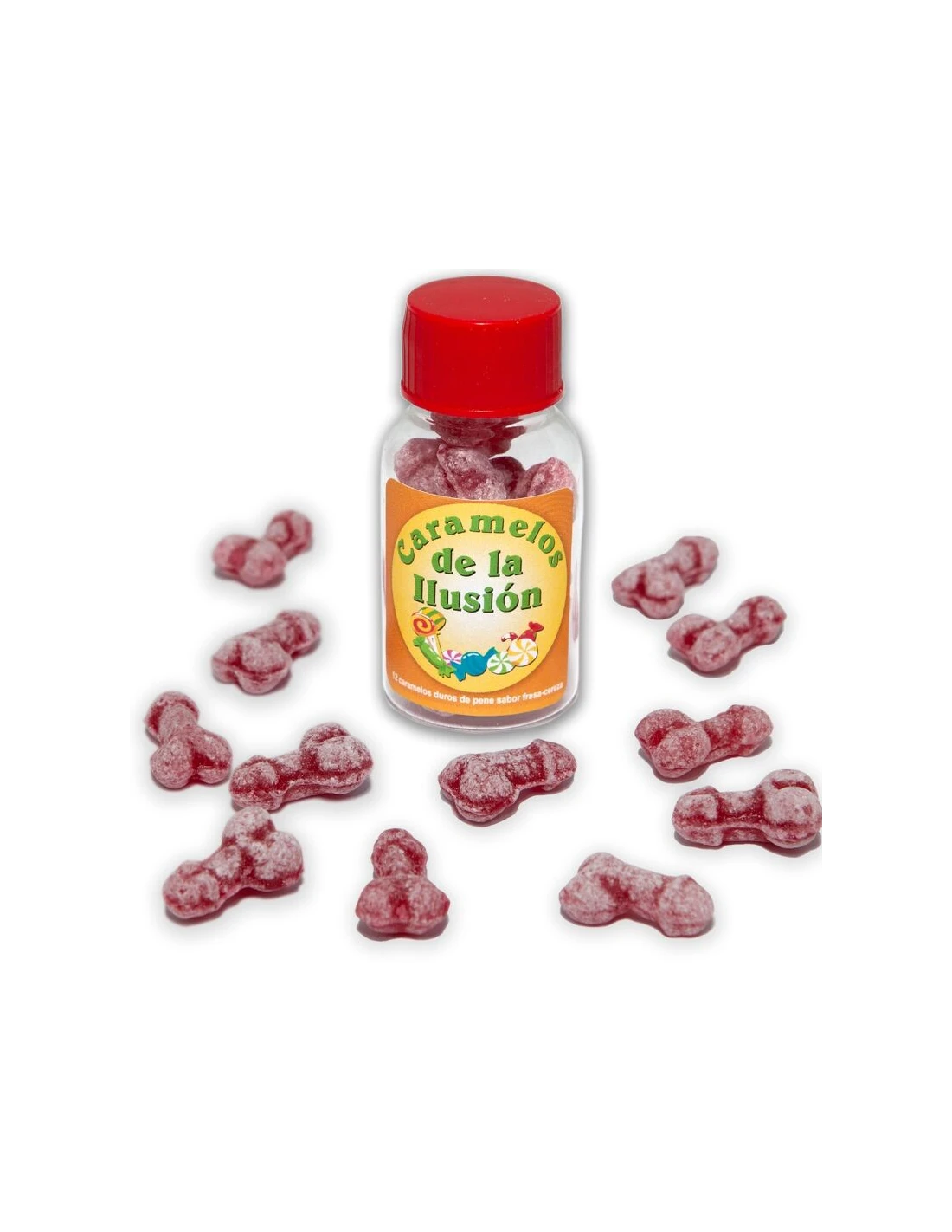 DIABLO PICANTE - 12 CARAMELOS DE LA ILUSIÓN FORMA PENE FRESA/CEREZA