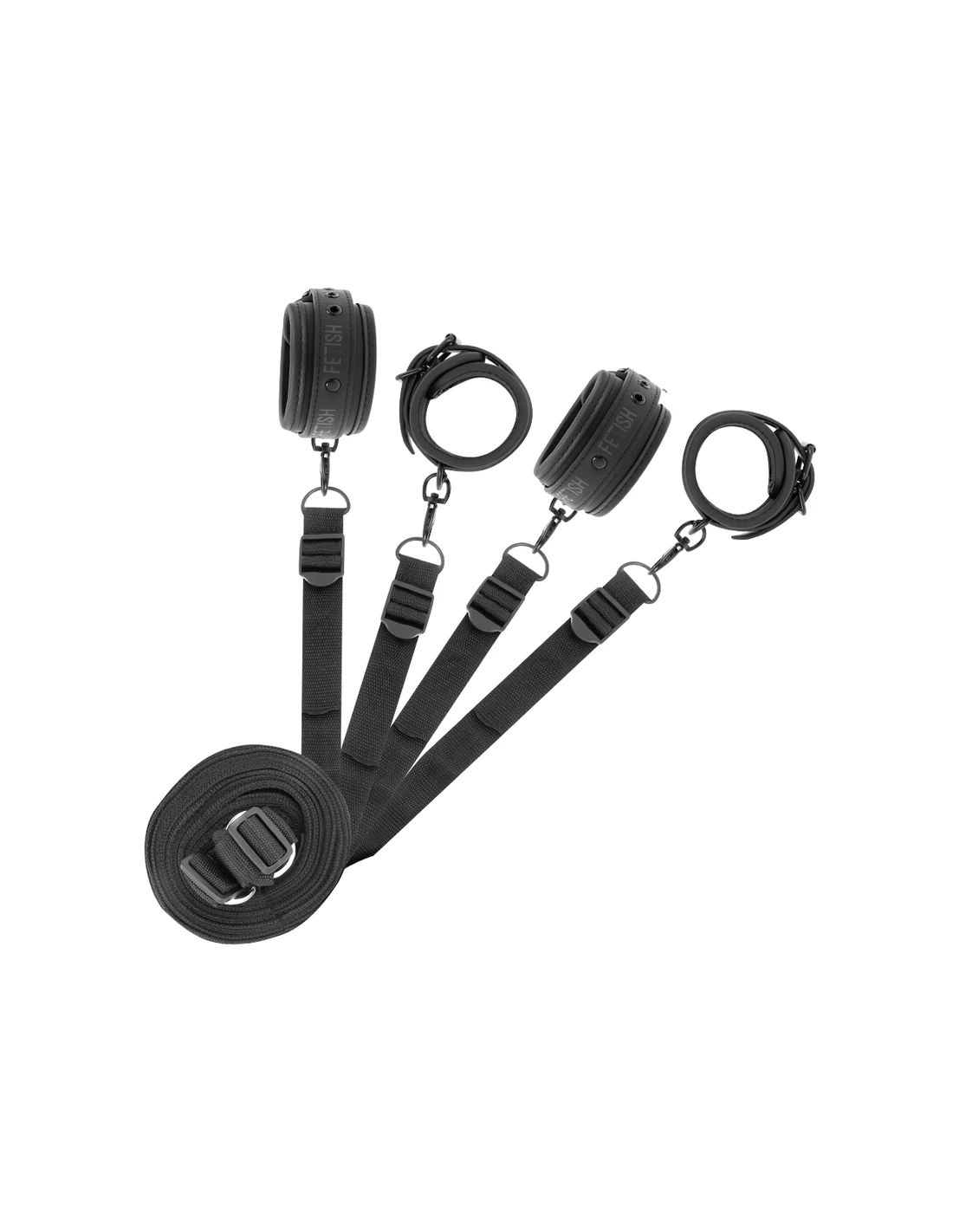 ¡Coge el control de tu amante con este completo set luxury para la cama! Estas esposas te permiten crear una sumisión total de tu amante en la cama, altamente resistentes de cuero vegano y metal libre de niquel. Puedes convertir con este set , la cama en un lugar BDSM.