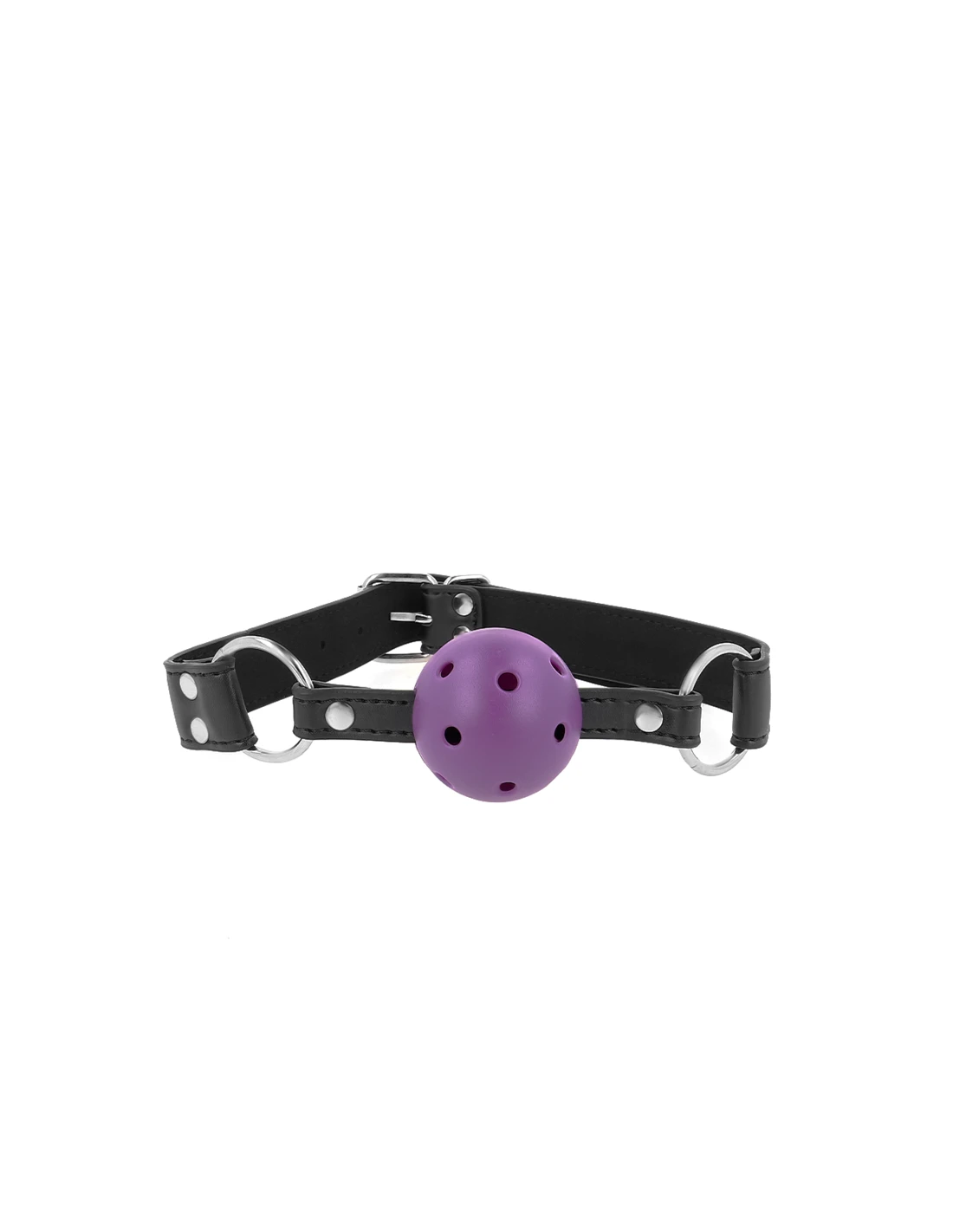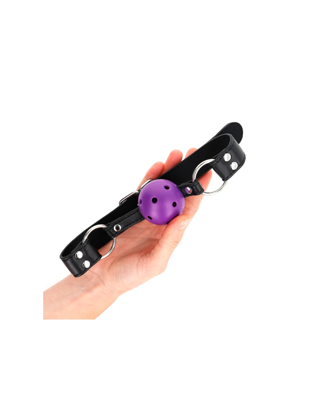 KINK - MORDAZA DE BOLA 4 CM TRANSPIRABLE CON DOBLE REMACHE MORADO 62 x 2.5 CM AJUSTABLE 42-58 CM