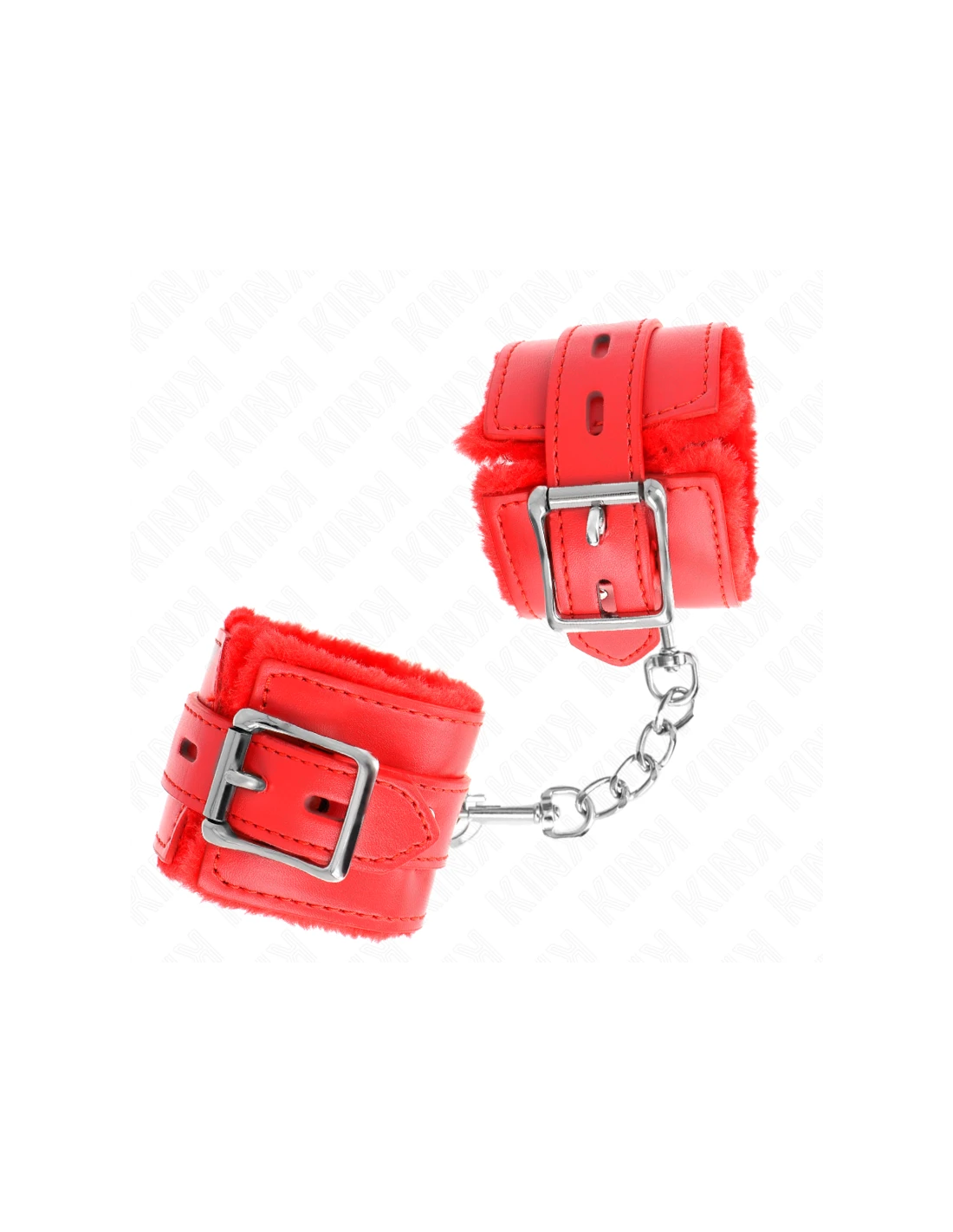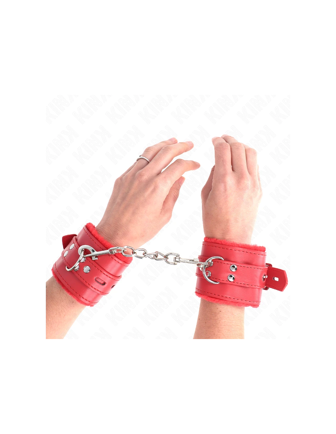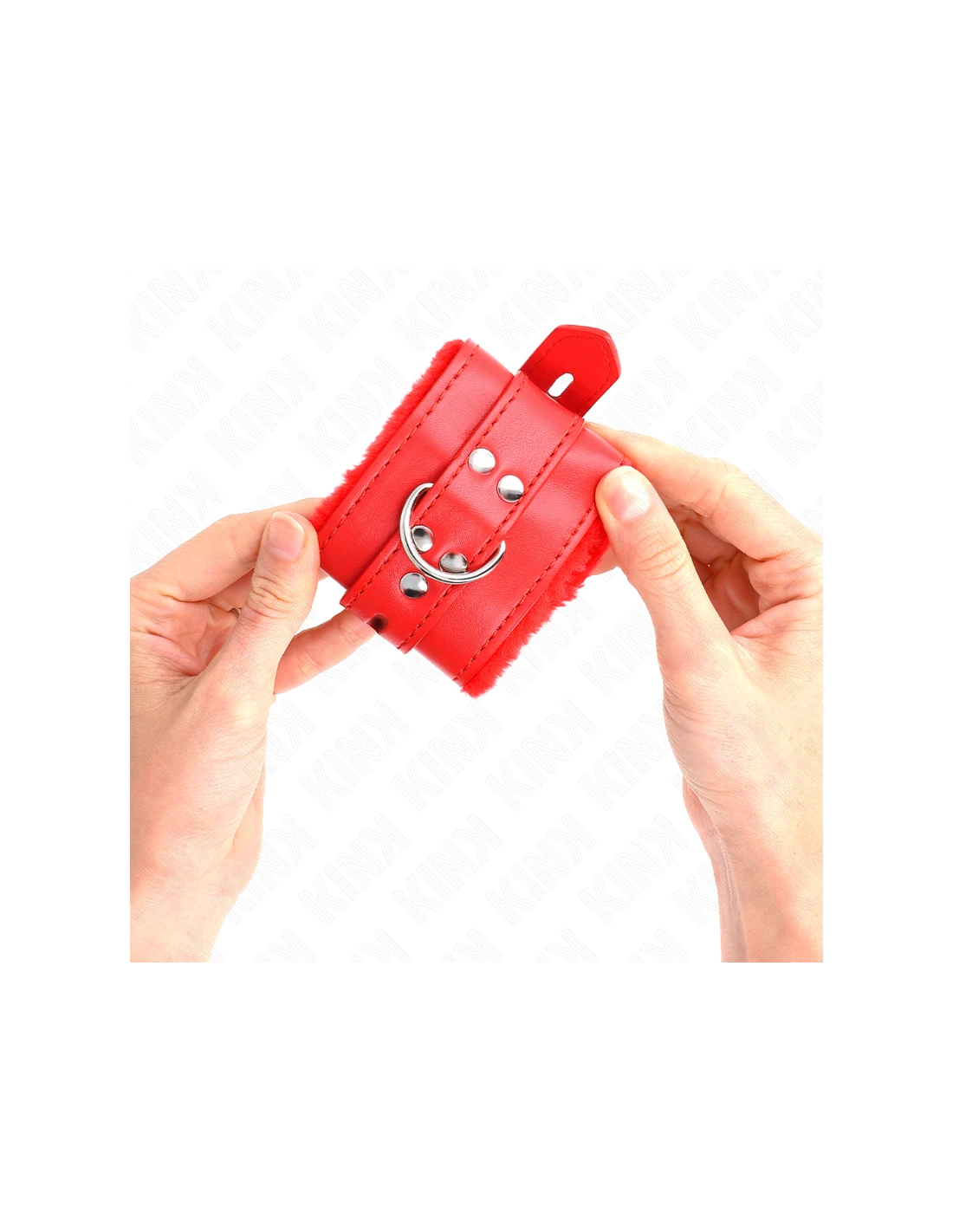 KINK - MUÑEQUERAS FORRADAS CON AGUJEROS CUADRADOS ROJO Y CORREA ROJO AJUSTABLE 17-29 CM X 6 CM
