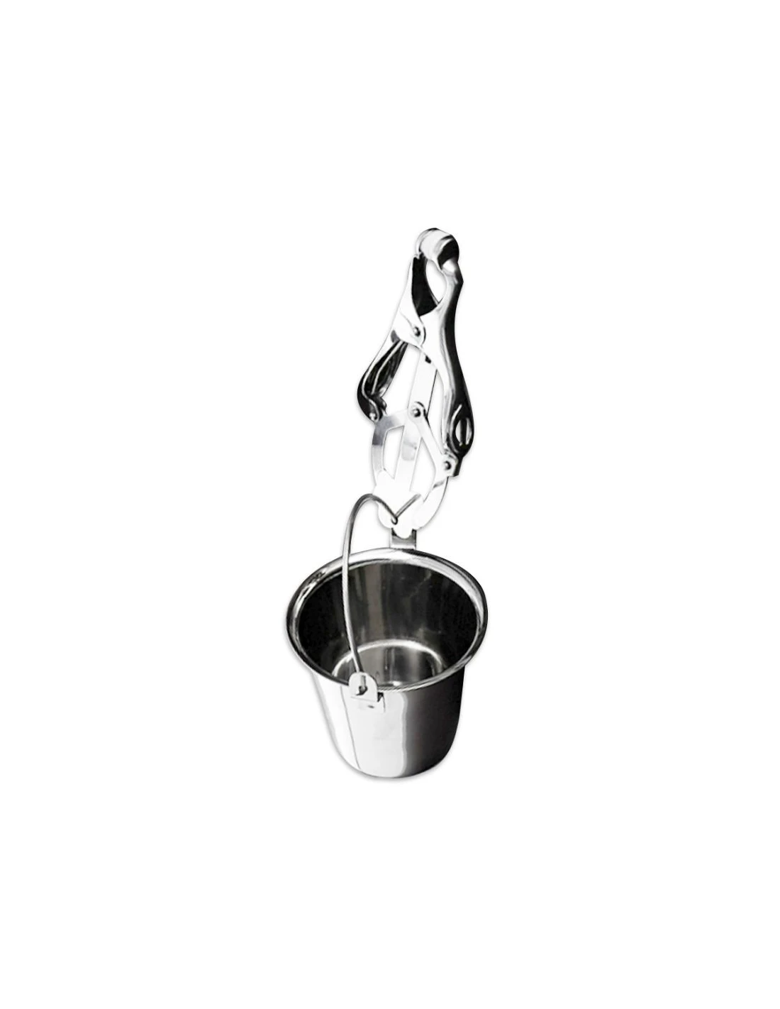 Las puntas de goma aseguran que todo el dolor sea en forma de placer y que mantengan su agarre. Para aumentar el peso, simplemente llena los pequeños cubos colgantes con agua, lubricante, arena, piedras o lo que sea que tu mente malvada pueda proponer.