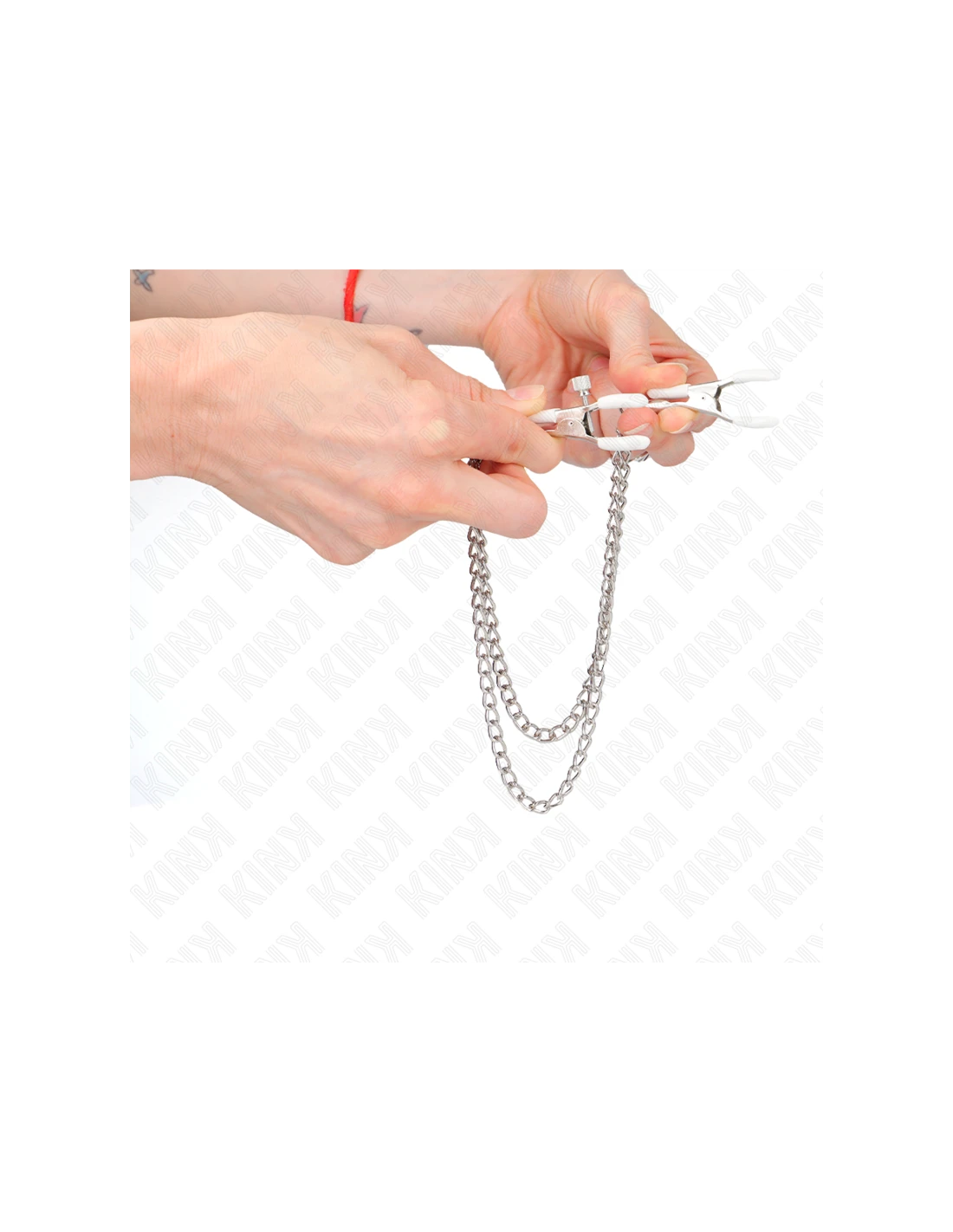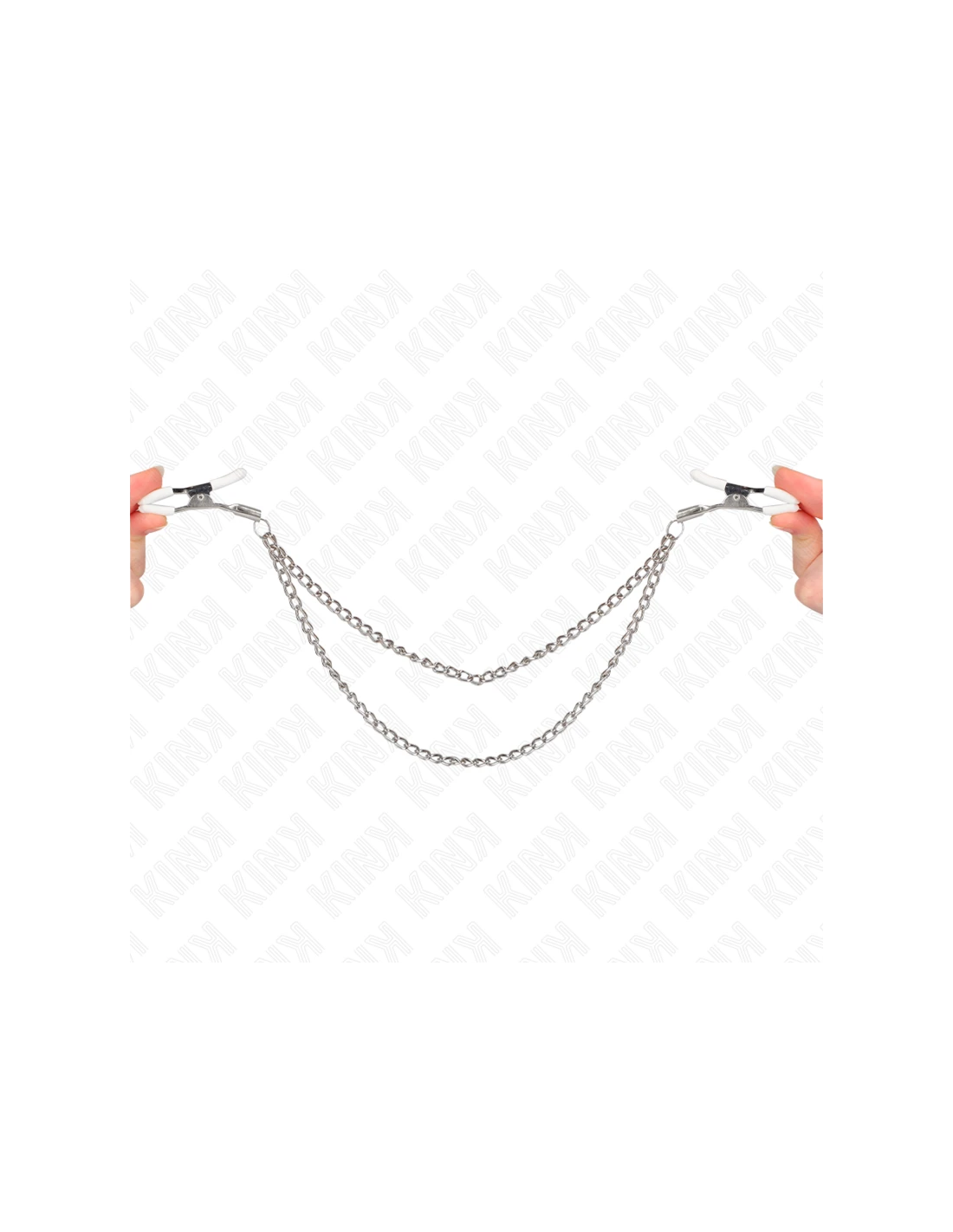 KINK - PINZAS PARA PEZONES CON DOBLE CADENA FINA PLATEADO 20/23 CM