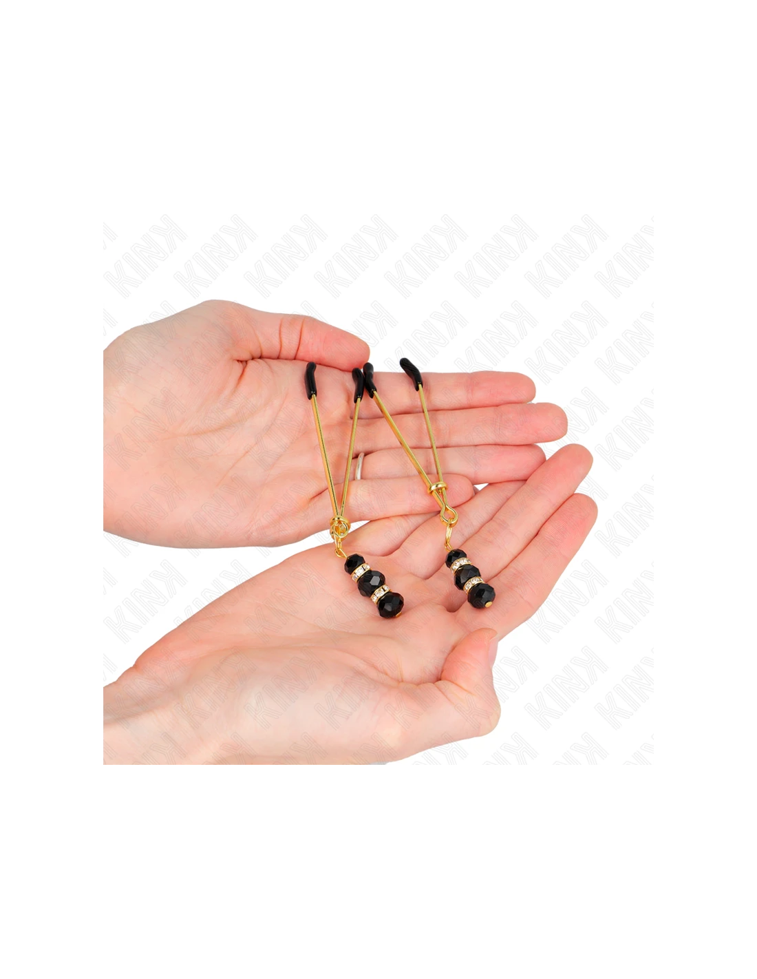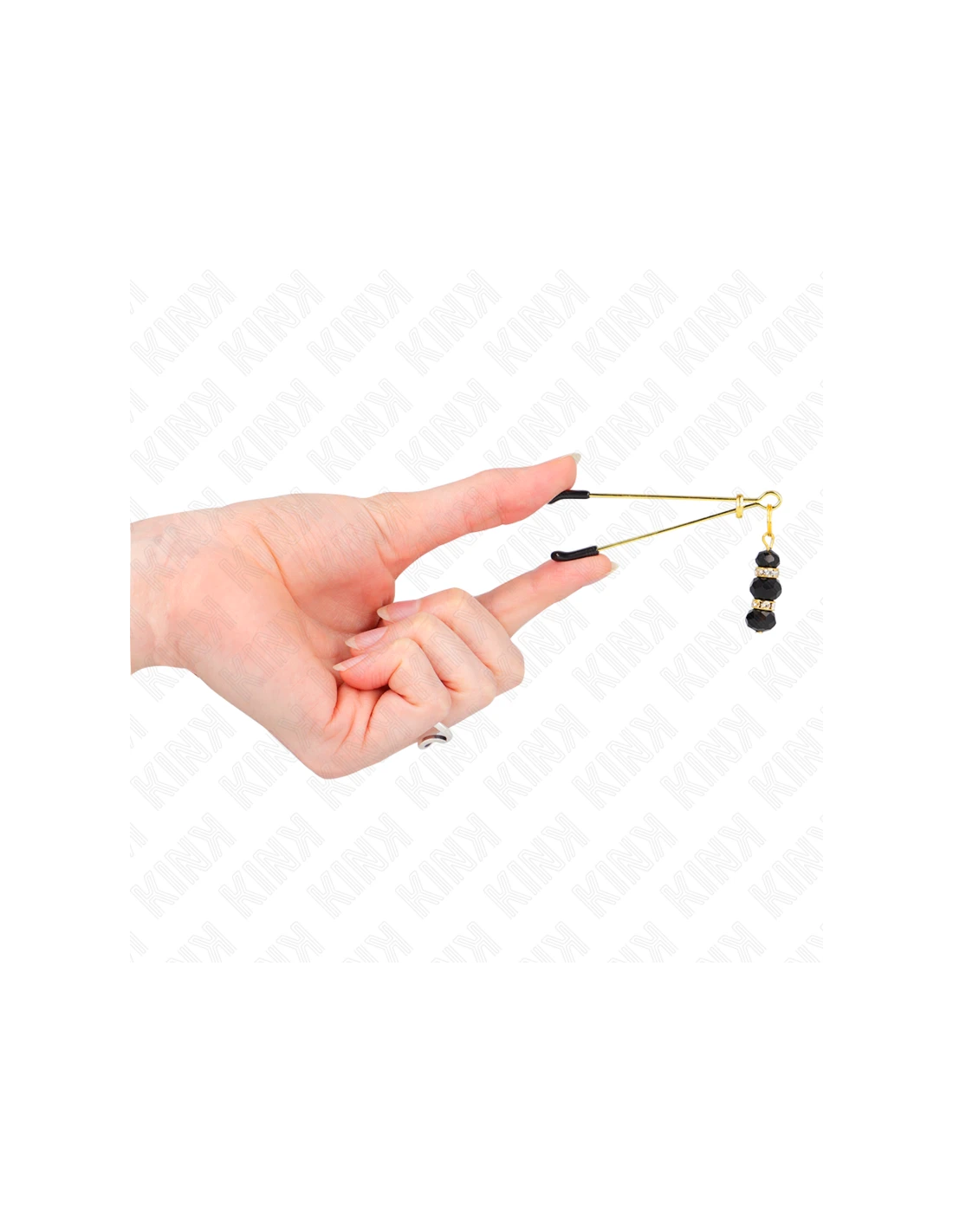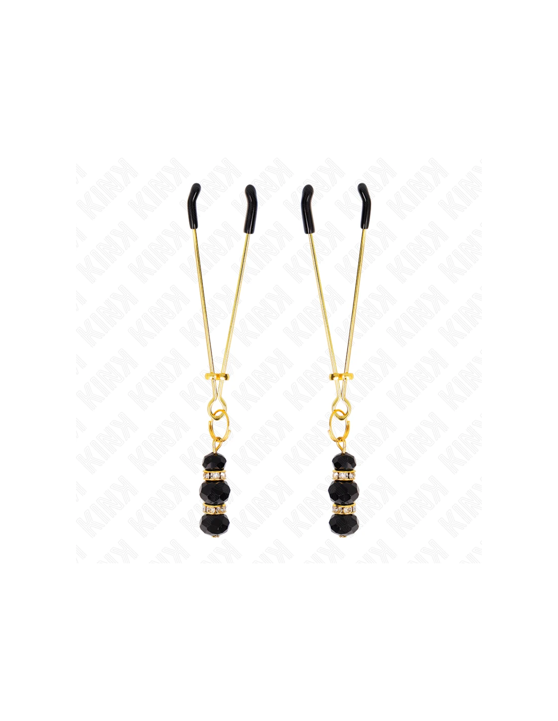 KINK - PINZAS PARA PEZONES DORADA FINA CON TRIPLE BOLA DE VIDRIO NEGRO 7 CM