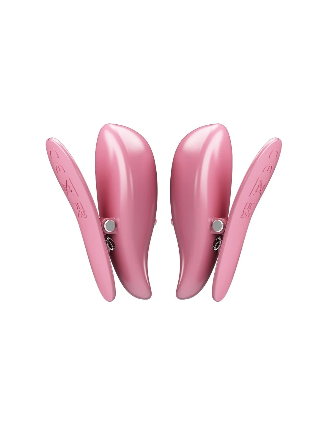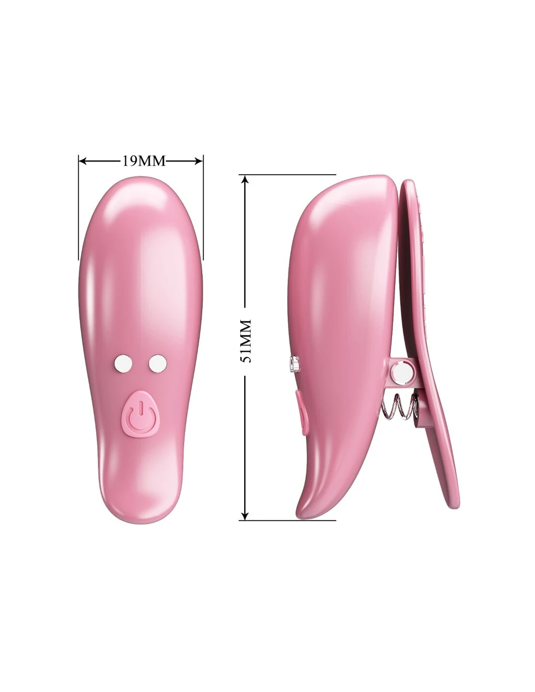 Estas lindas pinzas para pezones de color rosa agregan versatilidad divertida a toda tu diversión en el dormitorio con su diseño liviano e inalámbrico que se adhiere fácilmente con una superficie suave. ¡Cada pinza tiene 10 modos de vibración para explorar, que tú o tu pareja pueden controlar por separado para un placer personalizado!