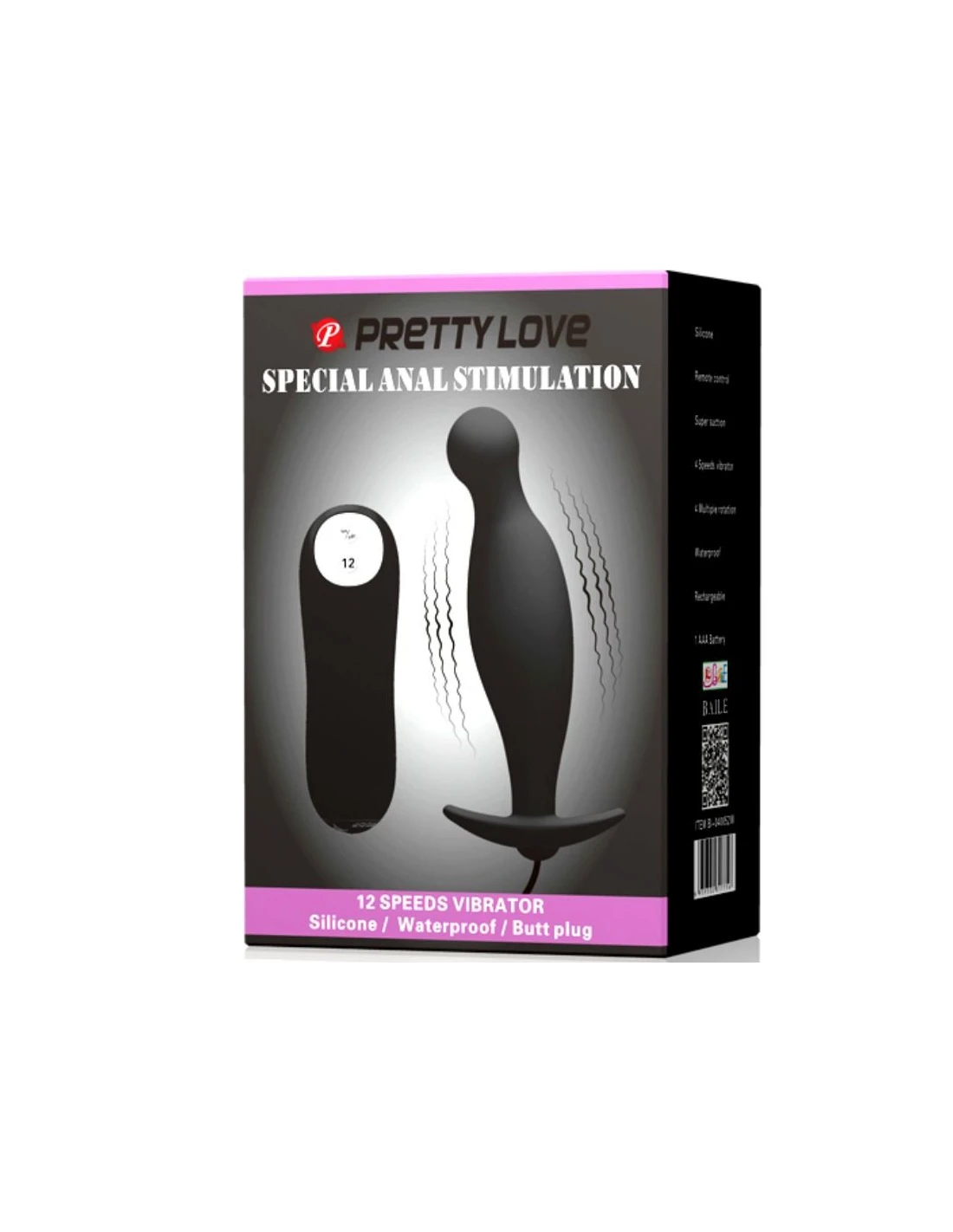 PRETTY LOVE - PLUG ANAL SILICONA 12 MODOS VIBRACIÓN NEGRO