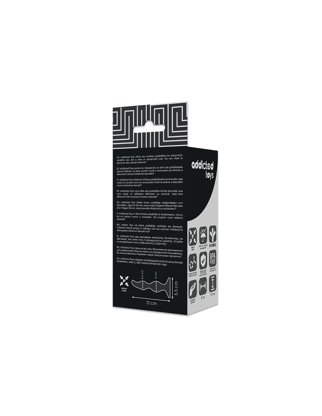 Este producto de Addicted toys enriquece tanto los juegos sexuales en pareja como los amplios juegos en solitario. Para un disfrute suave con los juguetes anales definitivamente debes emplear lubricante, ya que el ano por sí mismo no puede lubricarse de forma natural, lo cual es importante para un placer agradable. Lo ideal sería utilizar uno de los lubricantes de AQUA , que se combinan con los materiales y están disponibles en diferentes tamaños según tu actividad sexual.