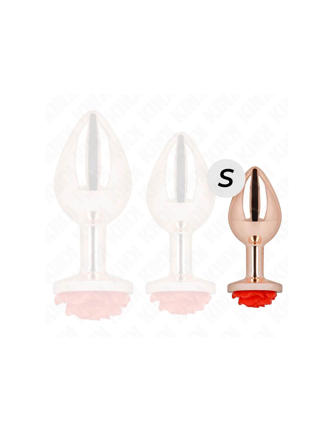 Plug Anal Metálico Oro Rosa con Adorno de Rosa Roja - Elegante, Suave y Sensual