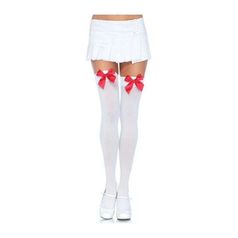 LEG AVENUE - MEDIAS NYLON BLANCO Y LAZO ROJO