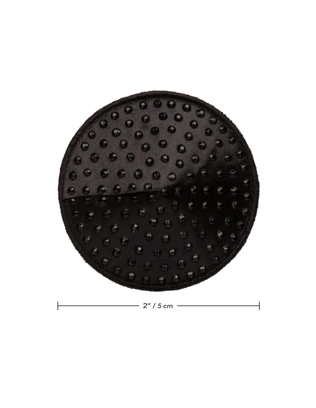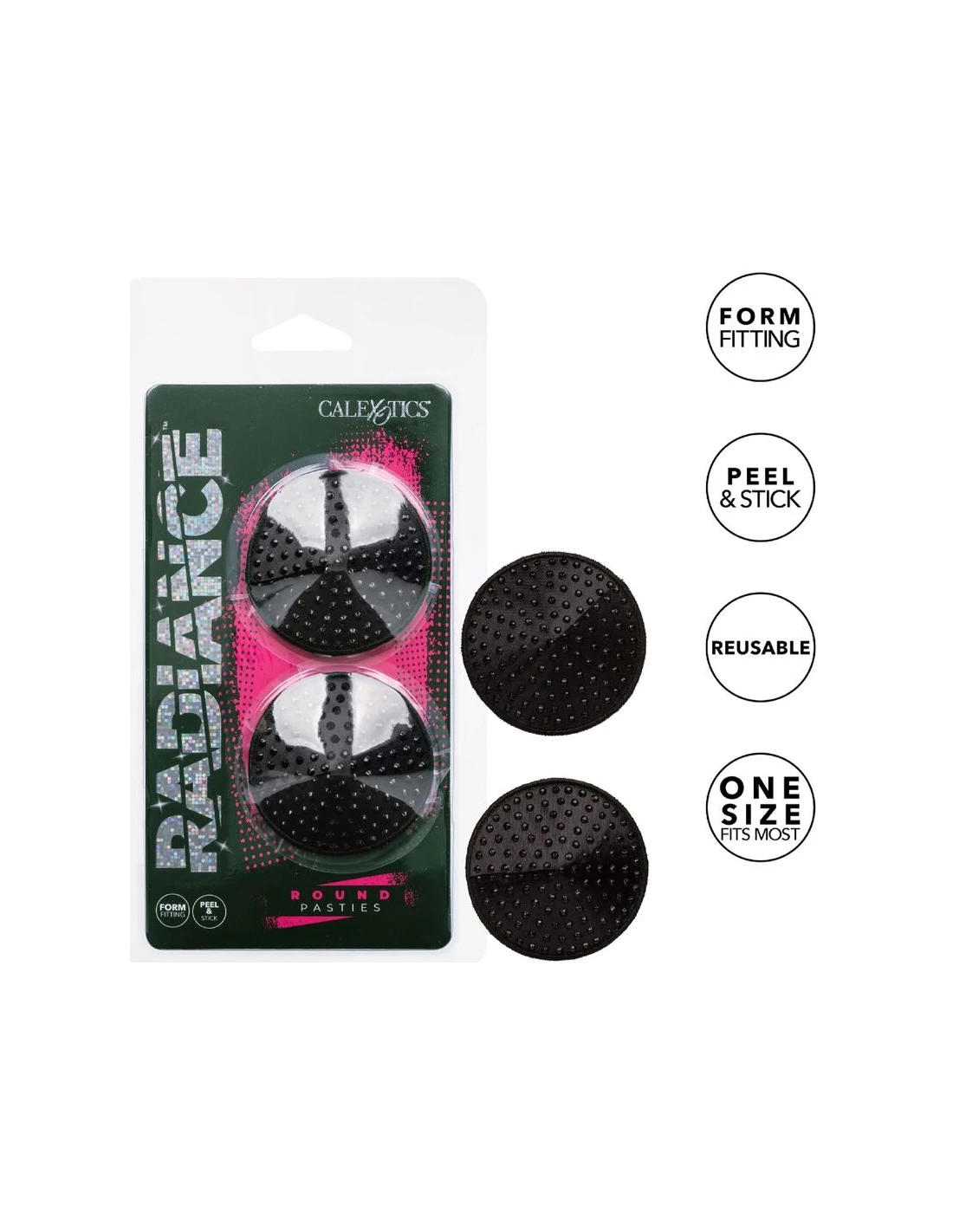 Envuelve tus golosinas en glamour con las deslumbrantes pezoneras Radiance redondas. Estas pezoneras reutilizables están listas para la fiesta con detalles de gemas brillantes, una cinta adhesiva fácil de despegar y pegar y un diseño que se ajusta a la forma.