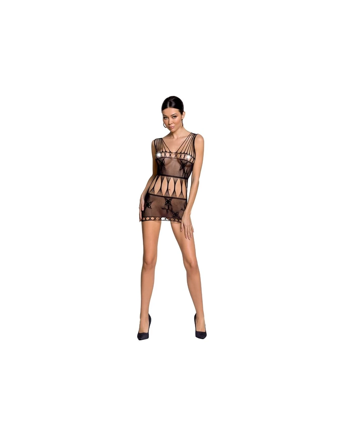 Fabuloso mini vestido en cuerpo en red con con un diseño espectacularmente sexy. Sus sexys encajes y transparencias te harán completamente irresistible. Fabricado por la prestigiosa marca de lencería sexy Passion.