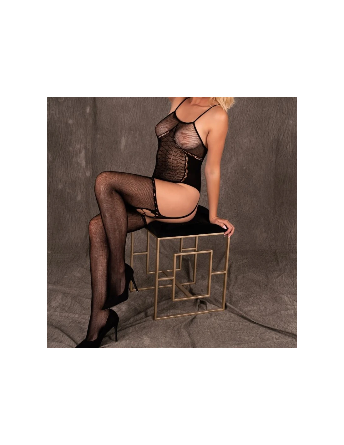 Es lencería para mujeres seguras y valientes que saben lo que quieren y cómo lo van a conseguir. Conscientes de sus fortalezas, su feminidad y sexualidad. Atrevida, valiente y llena de atractivo sexual. El bodystocking negro resalta y resalta todos los puntos fuertes del cuerpo femenino, al tiempo que oculta lo que puede permanecer oculto. Desde el que cubre y deja al descubierto el escote, los senos y las nalgas y enfatiza y adelgaza la cintura, envolviéndola sexymente. Hace que las piernas sean ópticamente más largas y delgadas. Toda la silueta parece tentadora, apetitosa y seductora, y ningún hombre pasará indiferente junto a una mujer así vestida.