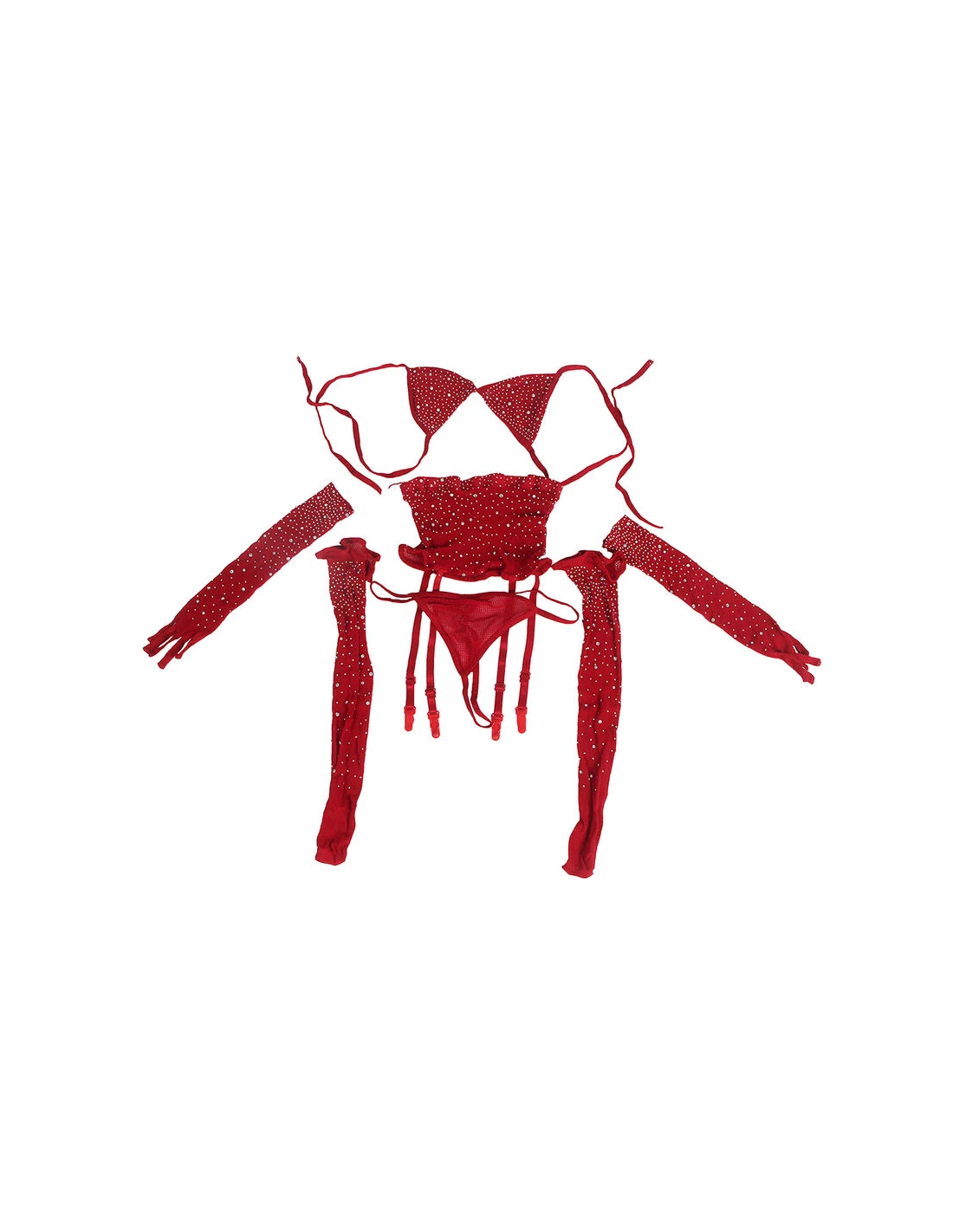 SUBBLIME - 952181 BODYSTOCKING DE REJILLA CON GUANTES Y DIAMANTES ROJO TALLA ÚNICA